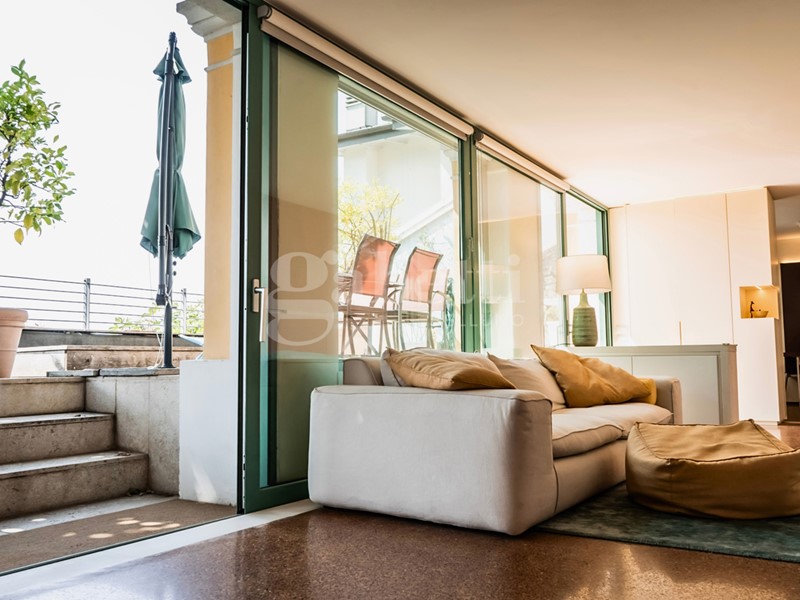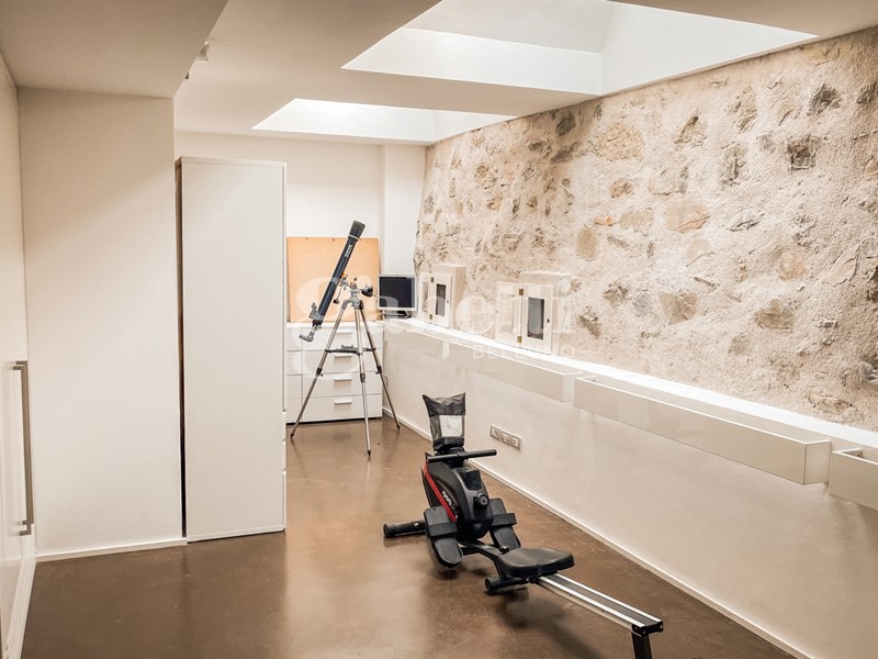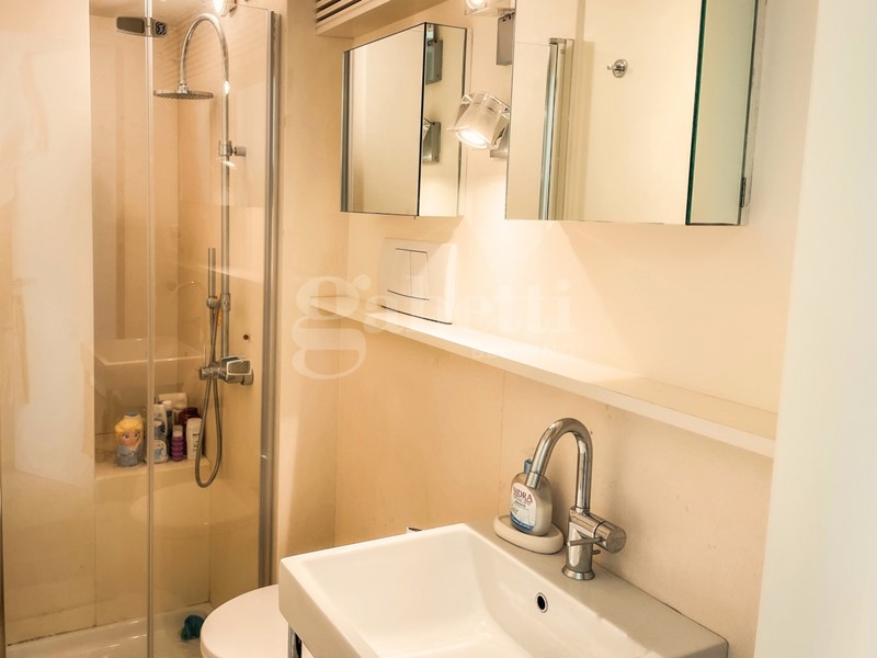 Dal giardino si accede direttamente al piano interrato, sorprendentemente luminoso grazie a due ampi lucernari. Questo livello ospita una spaziosa stanza multifunzionale, arredata con armadi su misura, servita da un elegante bagno con doccia. Uno spazio ideale da adibire a zona wellness, taverna o studio creativo.