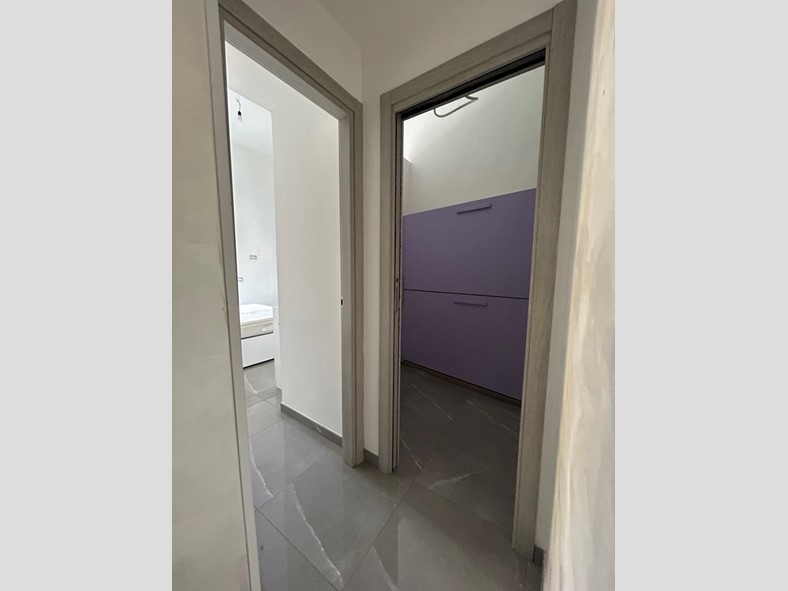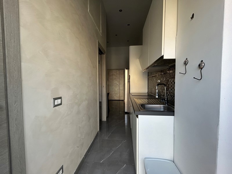 L'ingresso si apre sulla zona giorno, dove si trova la cucina dotata di un balcone alla romana che affaccia esternamente e garantisce una buona ventilazione. La parte notte è composta da una camera da letto luminosa con accesso a un balcone, e da una cameretta che può essere utilizzata come studio, stanza singola o guardaroba, a seconda delle esigenze. Completano la proprietà un bagno e un ambiente separato dedicato alla lavanderia.