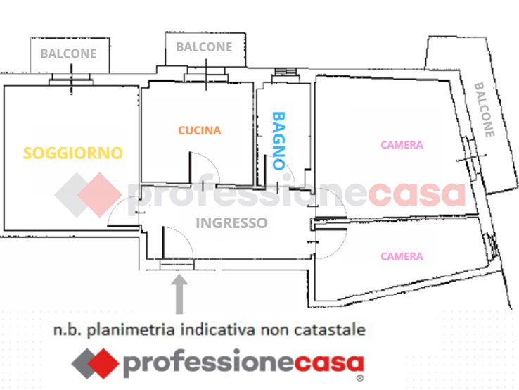 L'appartamento è composto da un'ampio ingresso, un comodo soggiorno, cucina abitabile, due camere da letto, un bagno e tre balconi.