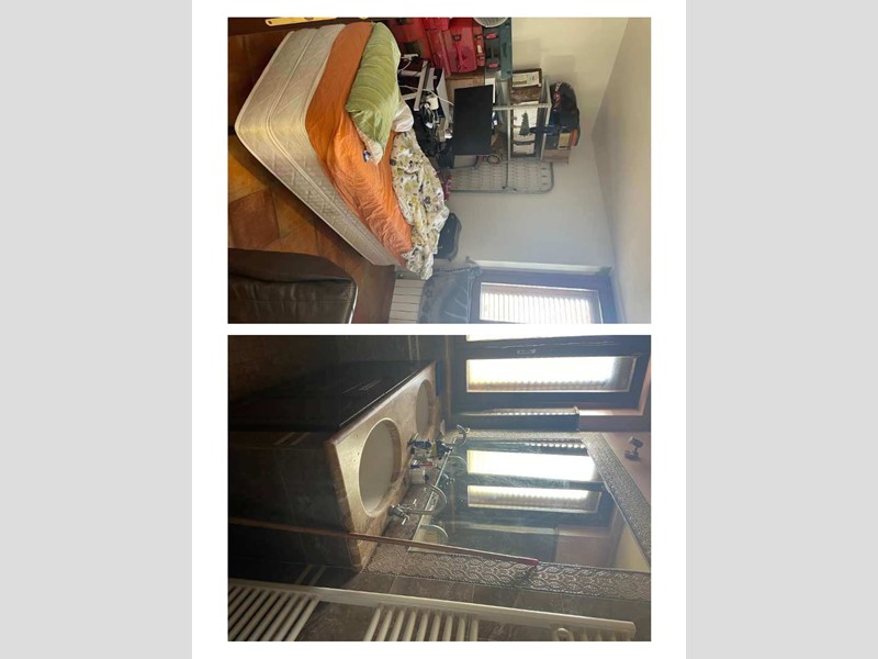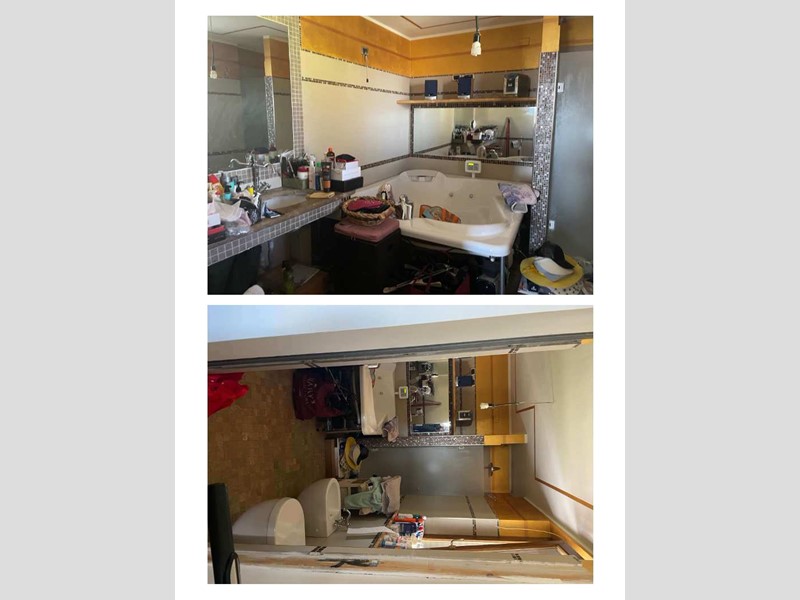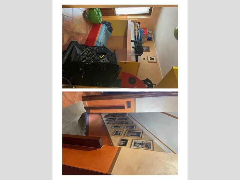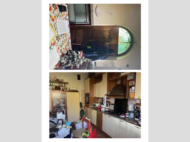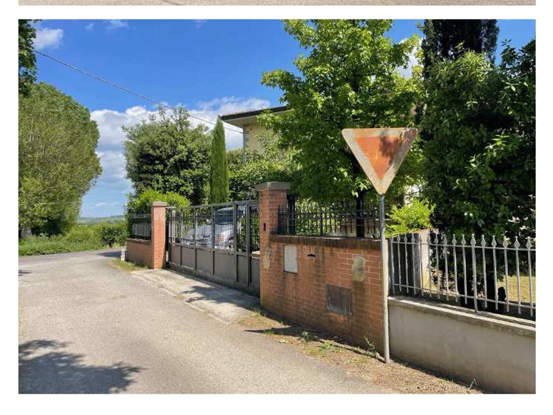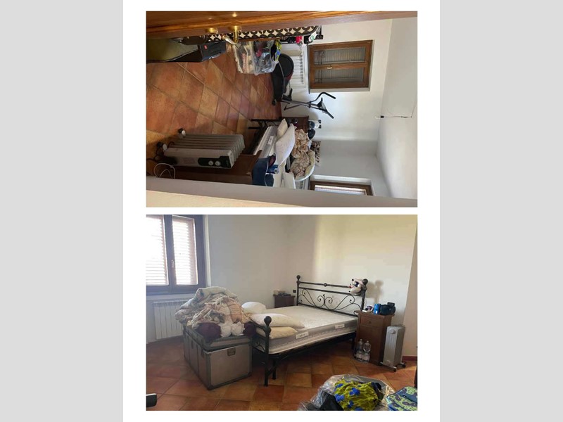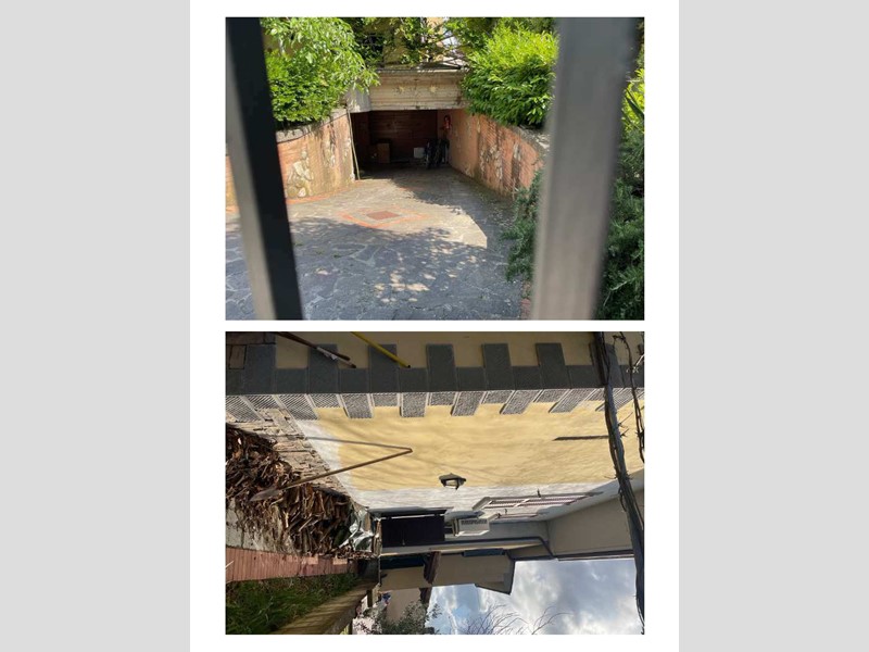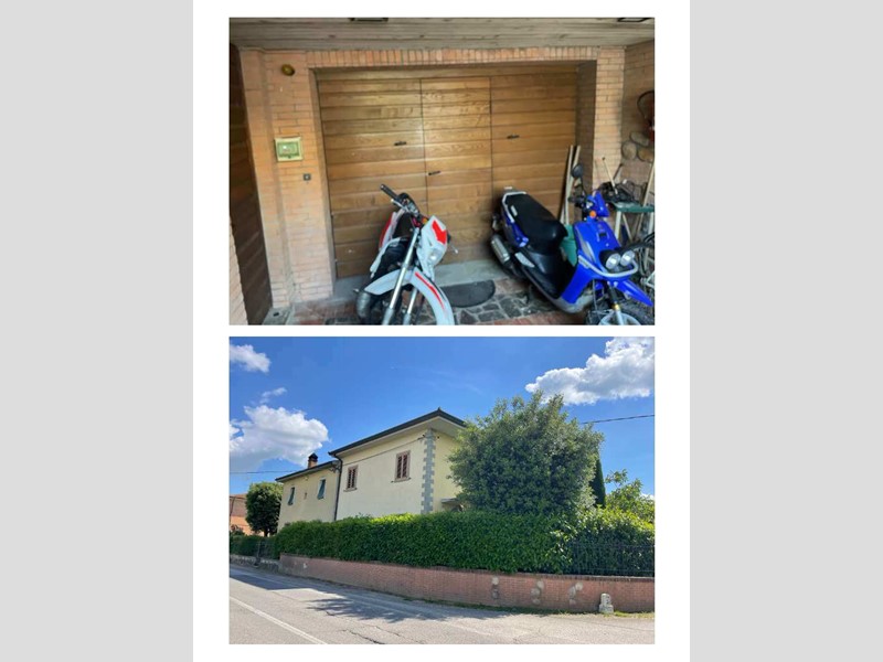 Porzione di fabbricato abitativo, di civile abitazione, con autorimessa, L’ ingresso al fabbricato avviene dal resede esclusivo che si sviluppa per lo più sul fronte ed in minima parte sui due lati liberi. La suddivisione interna, di tipo moderno e ben ripartita, è disposta con la zona giorno al piano terreno e zona notte al piano primo e risulta così composta: zona giorno, formata da ampio soggiorno, vano cucina, entrambi con caminetto, bagno e locale ad uso ripostiglio; zona notte, formata da n. 3 camere e n. 2 bagni di cui uno a servizio esclusivo della camera matrimoniale. Da una camera si accede alla soffitta formata da tre locali ed un w.c. di servizio. L’altezza di quest’ultima è variabile da un minimo di 1,10 mt fino ad un massimo di 1,85 mt., non risultando abitabile è utilizzata come locali ad uso ripostiglio e locale caldaia. Il garage, catastalmente individuato al Foglio 49 - Particella 99 sub. 10 ed è è ubicato al piano seminterrato e si estende su metà dell’abitazione; è collegato internamente da una scala, si presenta pavimentato e tinteggiato ed è utilizzato con locale pluriuso. Dall’esterno vi si accede da una rampa carrabile.