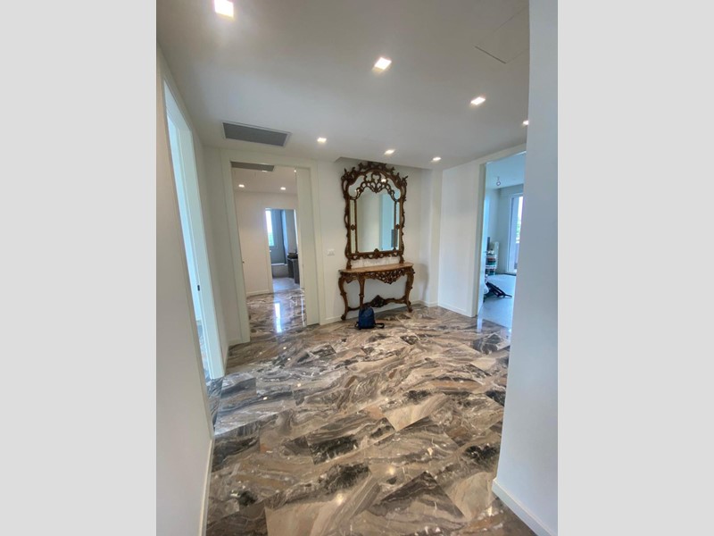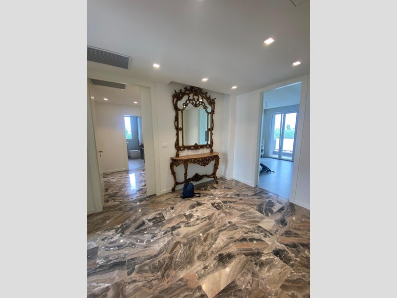 Tra le finiture spiccano pavimenti in marmo nella zona giorno, parquet nelle camere, infissi bianchi con triplo vetro, impianto di climatizzazione canalizzato, videocitofono e una caldaia a condensazione di ultima generazione. Tutti gli ambienti godono di un'eccezionale luminosità.