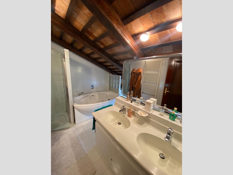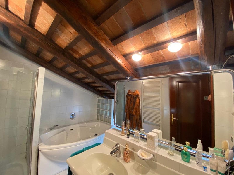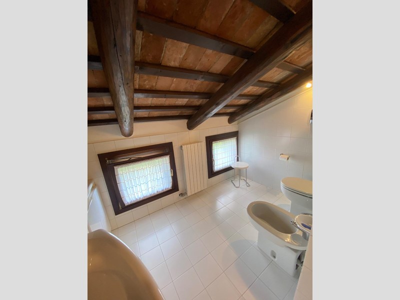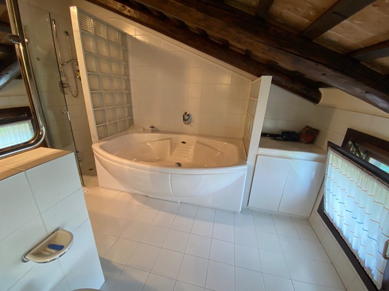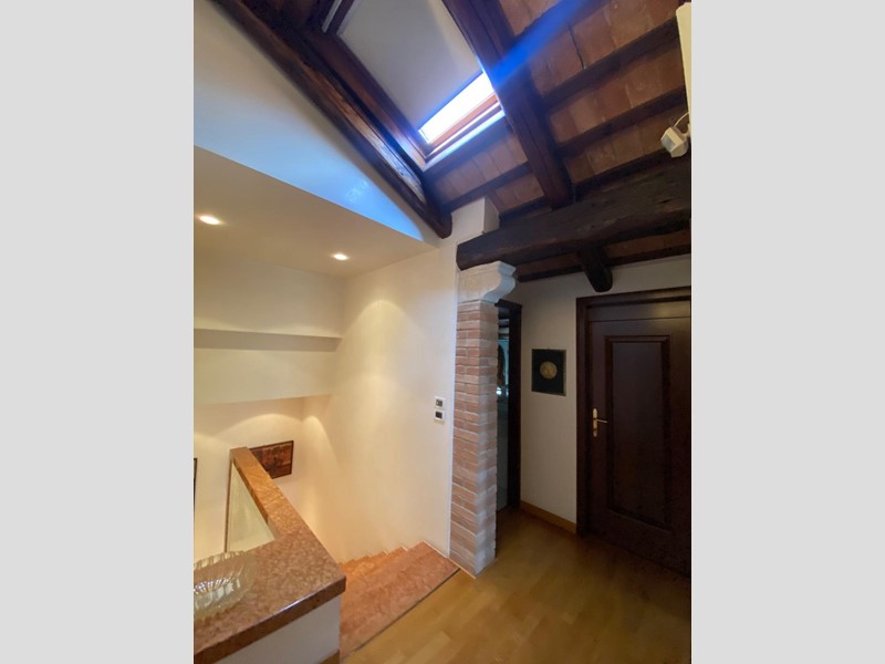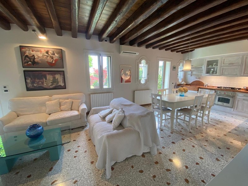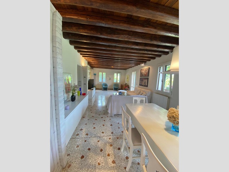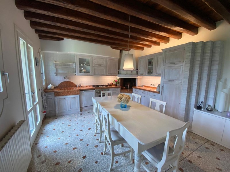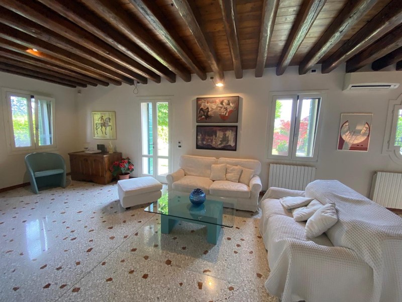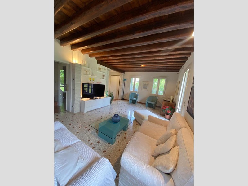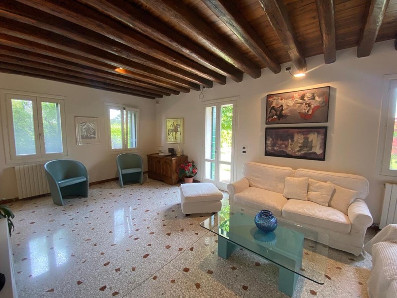 Tutta la casa è caratterizzata da travi a vista, recuperate dalla travatura di una villa veneta, che donano un tocco di autenticità e charme alla struttura. Questa proprietà rappresenta un perfetto connubio tra tradizione e modernità.
