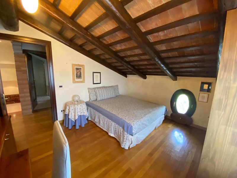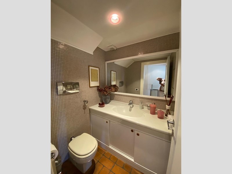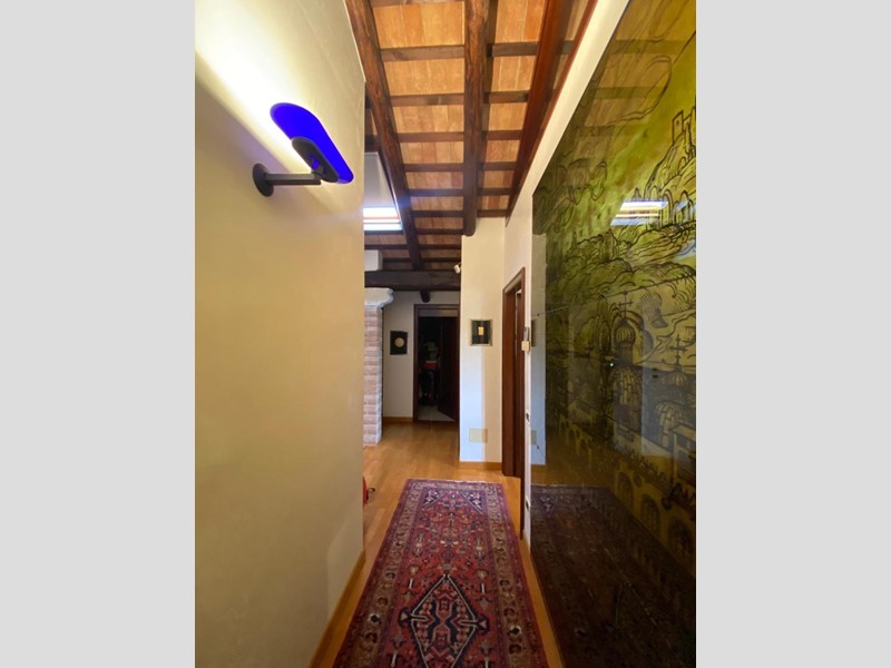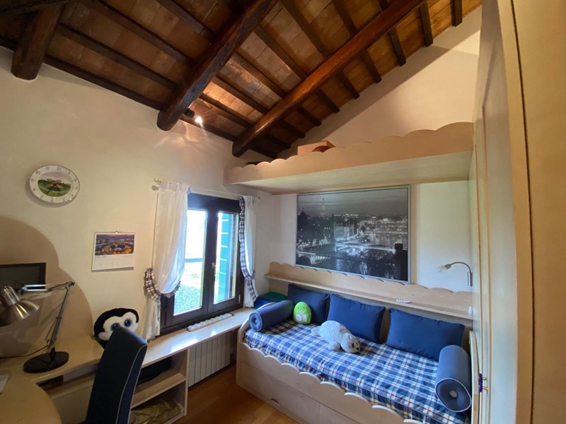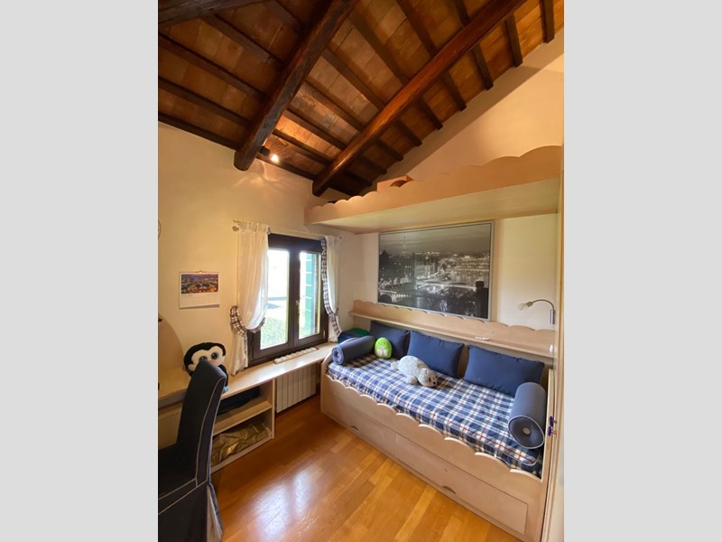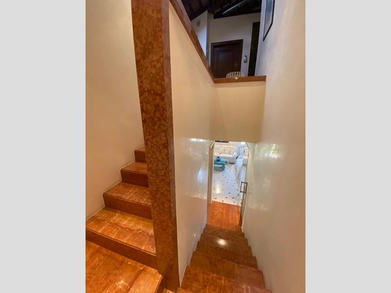Al primo piano si accede attraverso una scala in marmo di Verona, che conferisce eleganza e prestigio all'abitazione. La zona notte presenta un pregiato pavimento in legno e si compone di tre camere: due singole e una matrimoniale, quest'ultima impreziosita da un soppalco adibito a studio. Sempre al piano primo, si trovano un servizio e un altro locale adibito a rispostiglio, già predisposto con gli scarichi per essere trasformato in un ulteriore bagno.