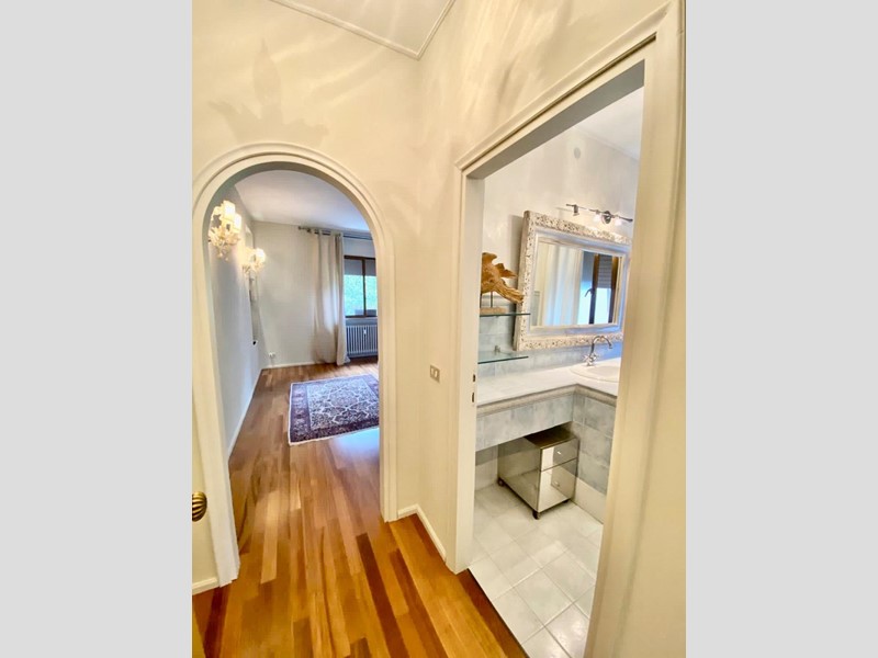 La zona notte si sviluppa lungo un ampio corridoio con armadiature eleganti che ottimizzano lo spazio. Troviamo una camera matrimoniale, attualmente utilizzata come cabina armadio, un servizio funzionale, una seconda camera matrimoniale spaziosa e luminosa, e la camera matrimoniale padronale con servizio indipendente: una suite principale che garantisce massima privacy e comfort.