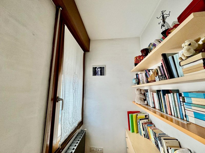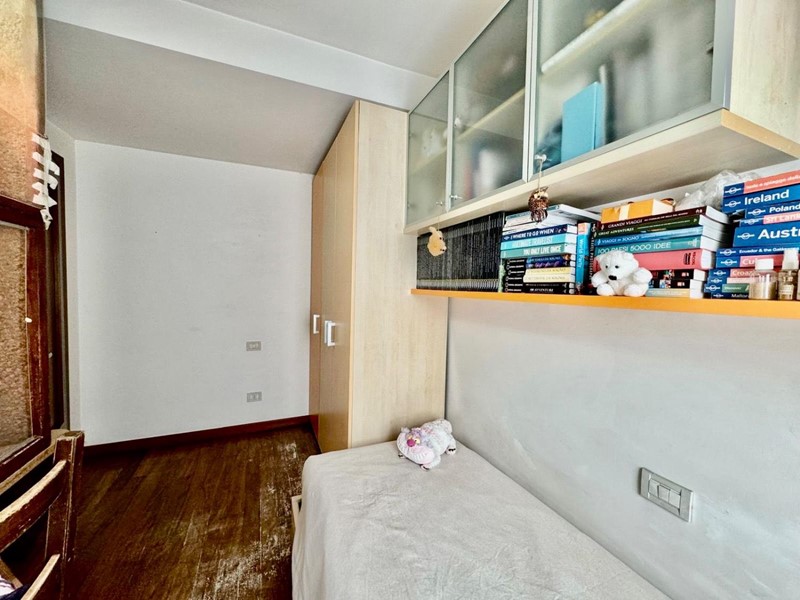 La zona notte comprende due camere da letto, una matrimoniale e una singola, e un bagno finestrato con doccia. L'appartamento è dotato di riscaldamento autonomo e aria condizionata, senza spese condominiali.