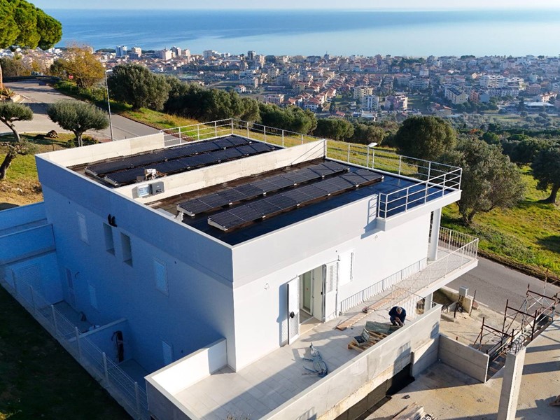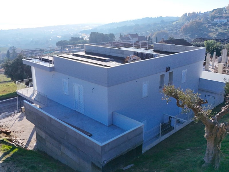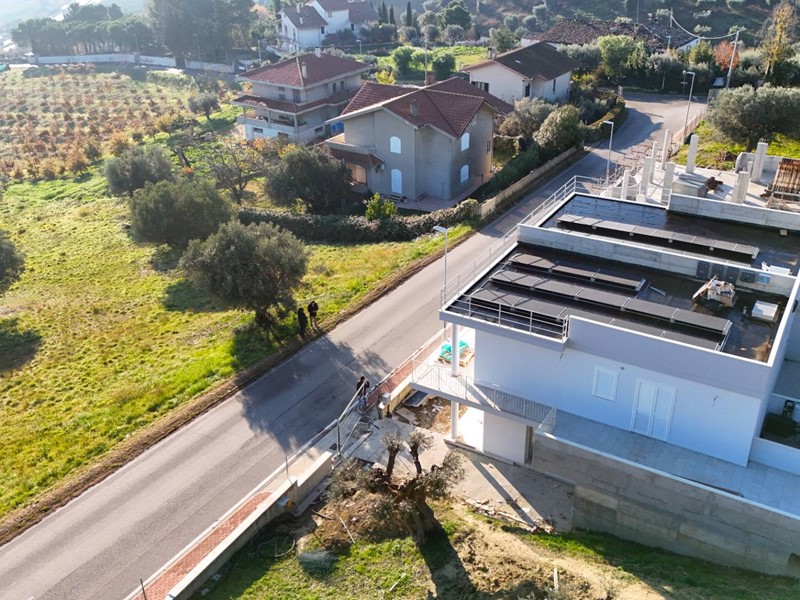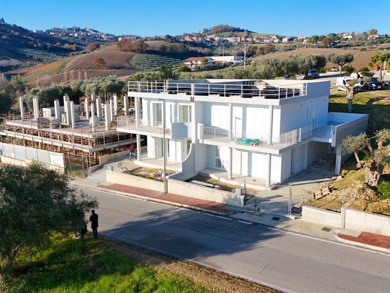 Villino bifamiliare in corso di costruzione, dallo stile contemporaneo e pulito, sviluppato su due livelli per una superficie coperta complessiva di circa 135 m². Una soluzione moderna, pensata per chi cerca comfort, efficienza e spazi ben distribuiti, senza rinunciare alla vista mare.