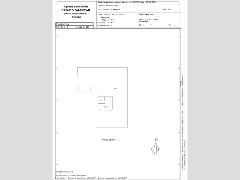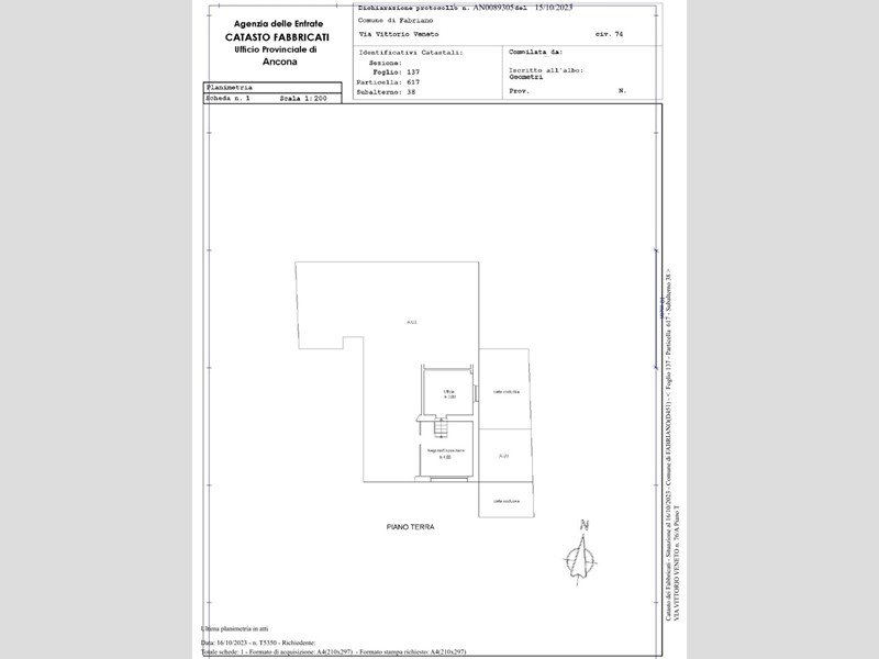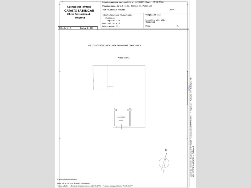 FABRIANO (AN) – LOCALE COMMERCIALE ideale anche per UFFICIO, con annessi deposito, cantina e posto auto scoperto. E' sito nel centro cittadino in zona residenziale ben servita da negozi e stazione ferroviaria. E' parte di più ampio condominio realizzato in muratura portante nei primi anni ’50. L'immobile è al piano terra ed ha una superficie di circa 48 mq suddivisi in due ambienti con altezza utile variabile da 3 a 4 metri. Attraverso una porta interna comunica con l’adiacente magazzino di circa 44 mq, anch’esso posto al piano terra con altezza interna di circa 3,80 m. Completano la proprietà una cantina di circa 39 mq con altezza interna di 2,40 m al piano seminterrato alla quale si accede dalla scala condominiale ed un posto auto esterno scoperto di circa 20 mq. Rif. 6733 DiLeoImmobiliare