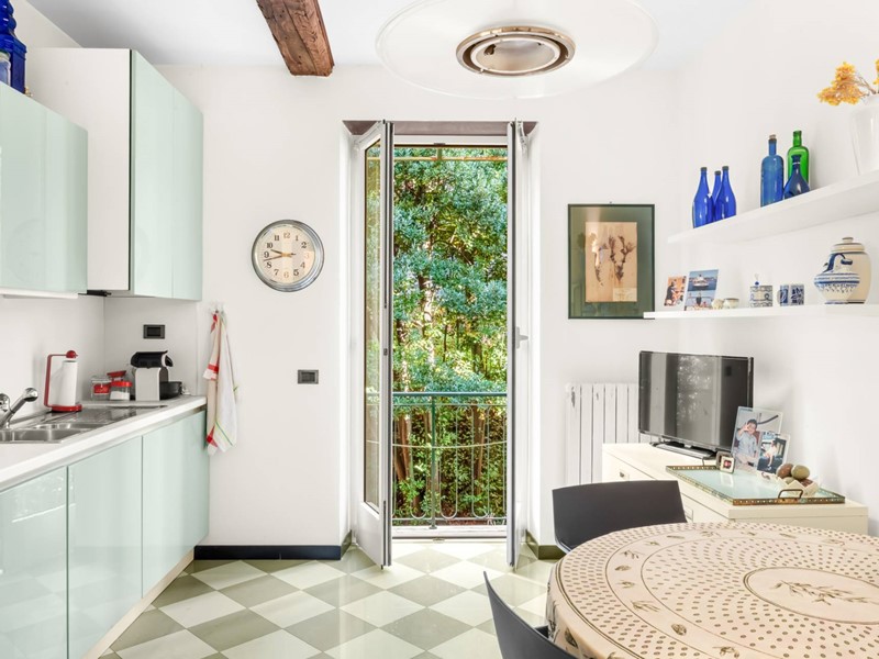 Le travi a vista, gli inserti in pietra e il riscaldamento autonomo completano una proprietà che unisce carattere storico e comfort contemporaneo. È disponibile, separatamente, un ampio box auto situato a breve distanza dallabitazione, un elemento di particolare valore in una delle zone più centrali e richieste di Camogli.