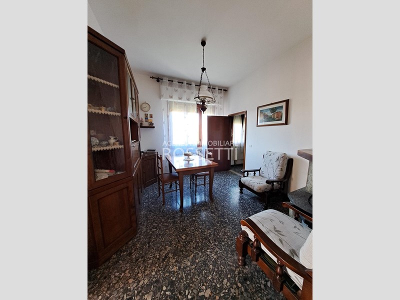 l'immobile si compone da ampi vani, cucinotto con sala da pranzo, soggiorno, due camere matrimoniali, cameretta e bagno. Al piano terreno sul retro dell'edificio un locale ad uso garage e bel giardino di circa 500 mq. Buone condizioni, necessita di alcuni lavoretti di manutenzione e ammodernamento.