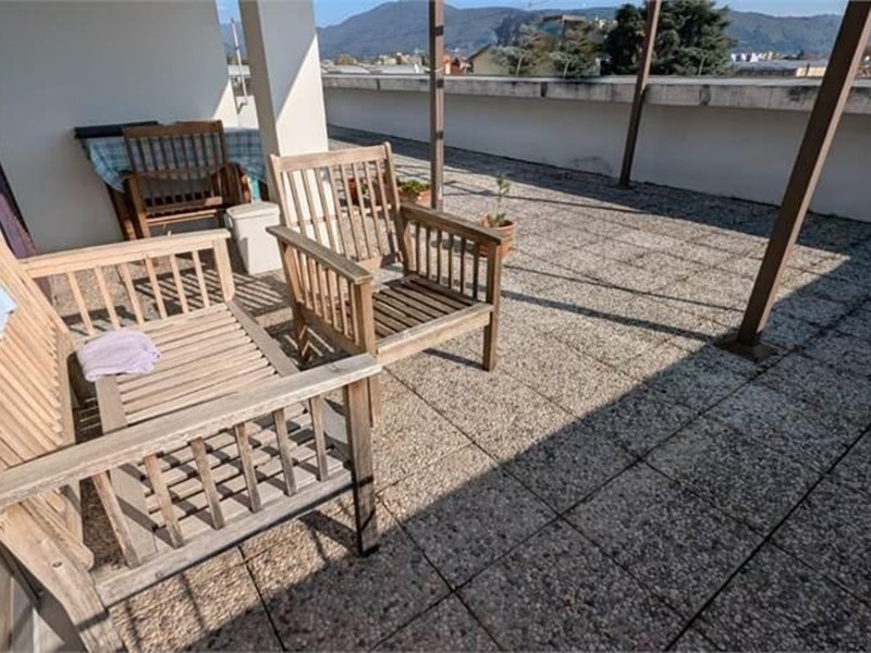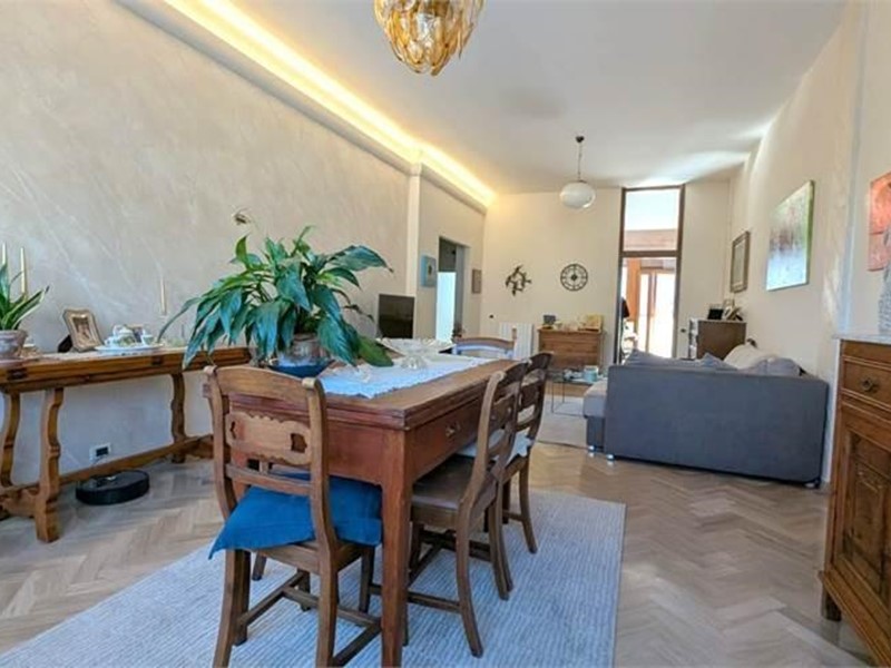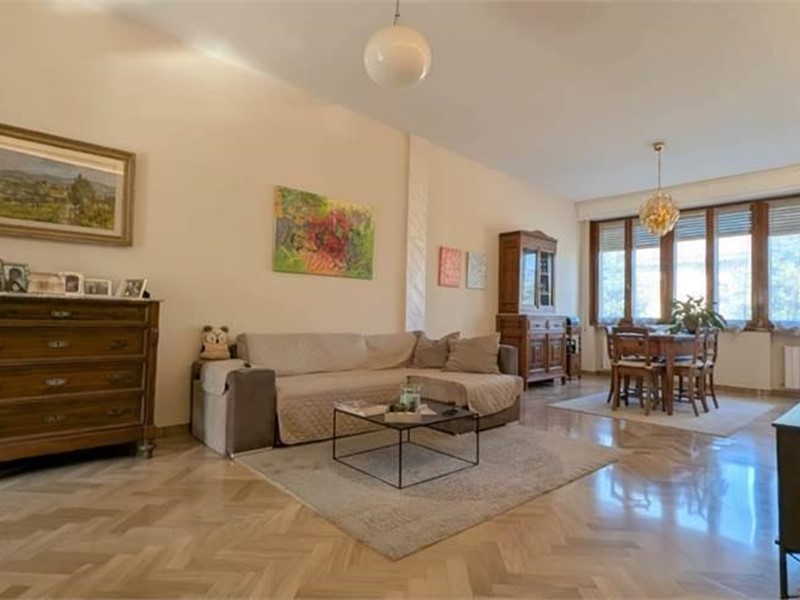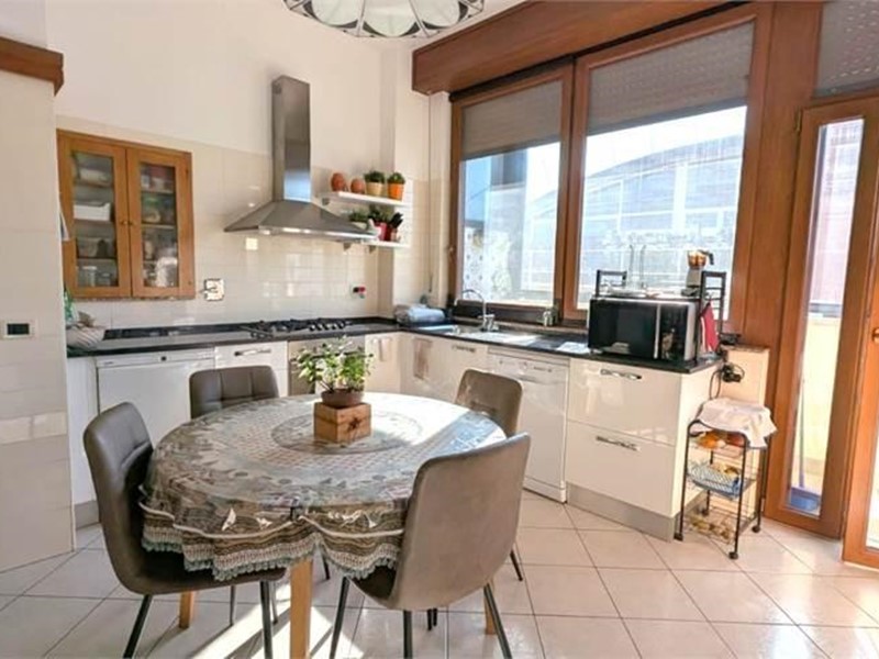 Piano terra ingresso con ascensore e scale che portano in cantina e al primo piano. Al primo piano ingresso, luminoso salone, cucina abitabile con balcone e ripostiglio, quattro camere da letto, bagno, ripostiglio lavanderia. Al piano superiore ed ultimo ampia soffitta adibita a mansarda composta da soggiorno con accesso ad ampia terrazza solare, cucina, bagno e stanza pluriuso.