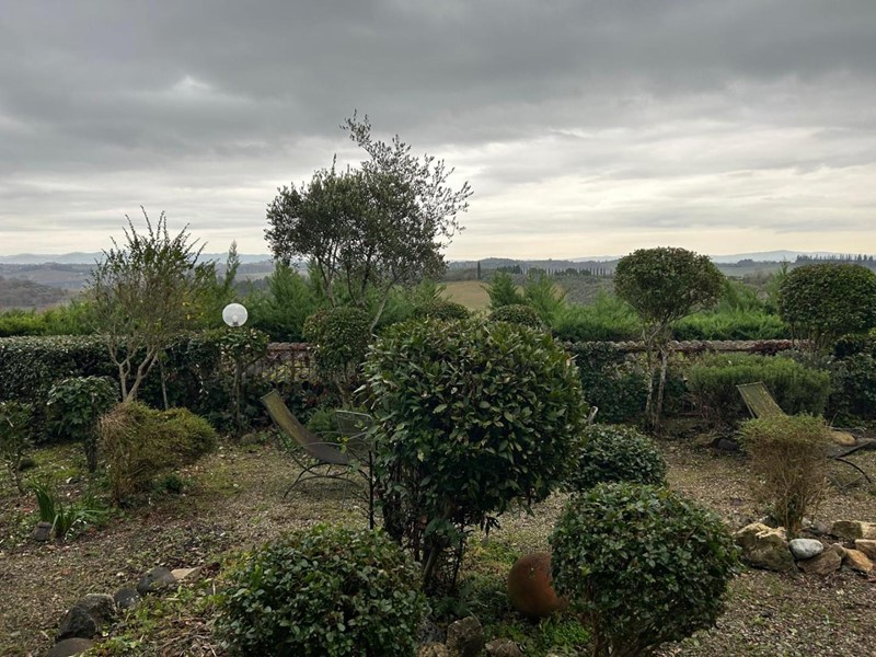 Prossima a Siena in graziosa villetta bifamiliare appartamento completamente indipendente e ben rifinito al piano terreno, senza scale, di mq. 148 cat., 189 comm., costituito da ingresso, due saloni doppi, cucinotto, camera, (possibile una seconda)lavanderia occorrendo trasformabile in cameretta, due bagni, giardino in ottimo stato su tre lati, garage di mq. 36 ca, resede terreno mq. 5000. Panorama bucolico e silenziosità garantita ca. Tratt.