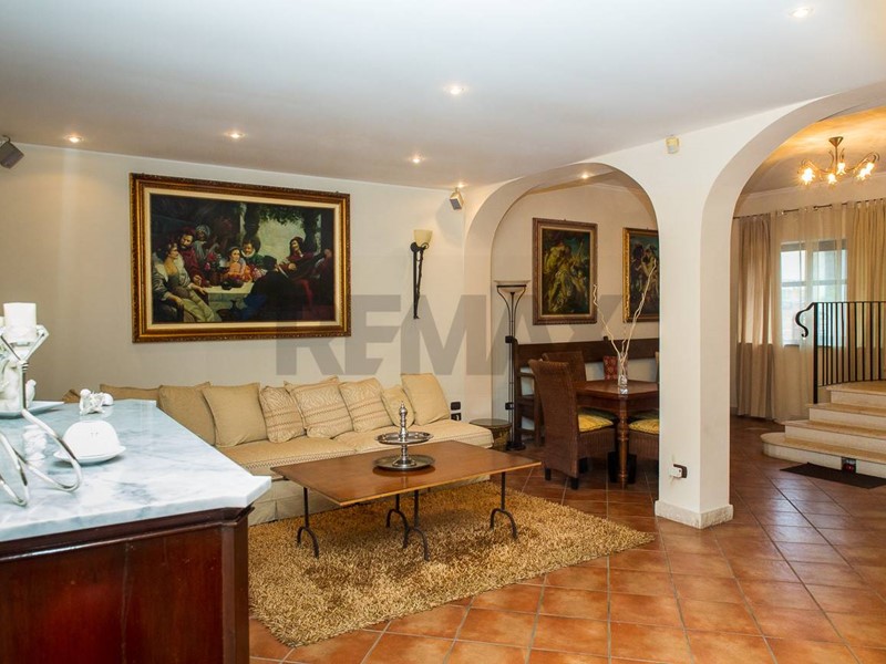 All' ingresso troviamo in un ampio e luminoso salone living, un elegante scala che conduce al piano superiore
