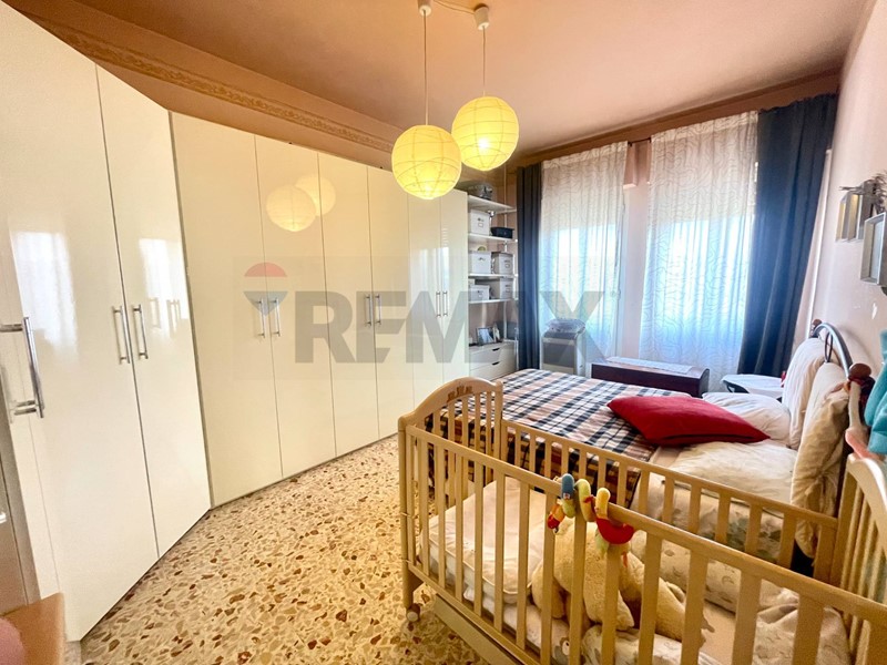 L'immobile, di 100 mq, è così composto: ingresso, salotto, sala da pranzo con terrazza, cucinotto, due camere da letto (di cui una con terrazza) ed un comodo servizio finestrato con box doccia e vasca.