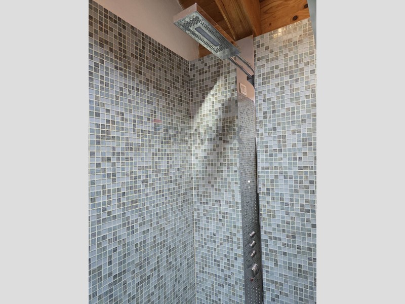 Il bagno con lucernaio automatico, allarmato come il resto dellabitazione, regala luce naturale e una piacevole sensazione di quiete, unendo atmosfera e sicurezza.