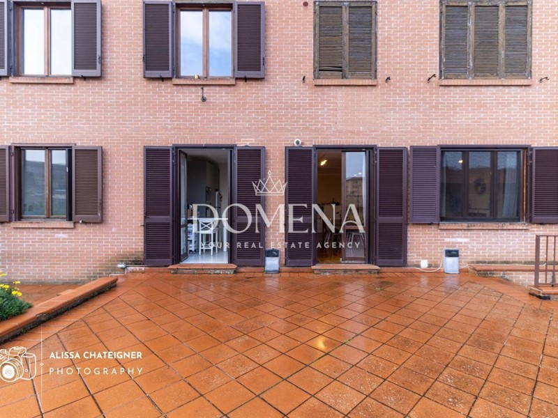 L’ingresso conduce a un ampio soggiorno, luminoso e arioso, vero cuore della casa, che si apre direttamente sul terrazzo: uno spazio intimo e suggestivo, perfetto per colazioni al sole, cene al tramonto o semplicemente per godersi la quiete del verde circostante. Il giardino privato, raro e prezioso in centro storico, regala un angolo di natura e tranquillità, ideale per momenti di relax e convivialità.
