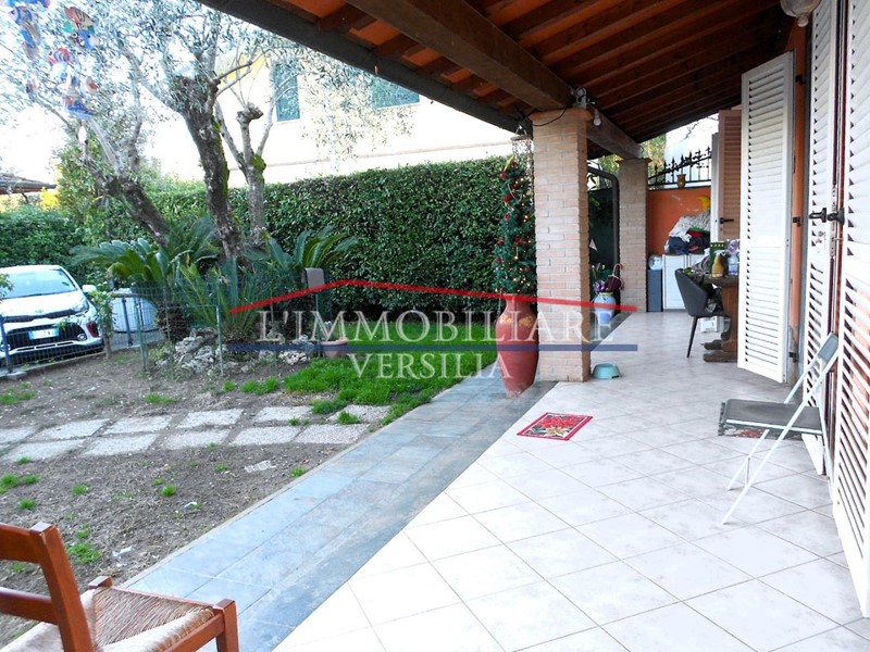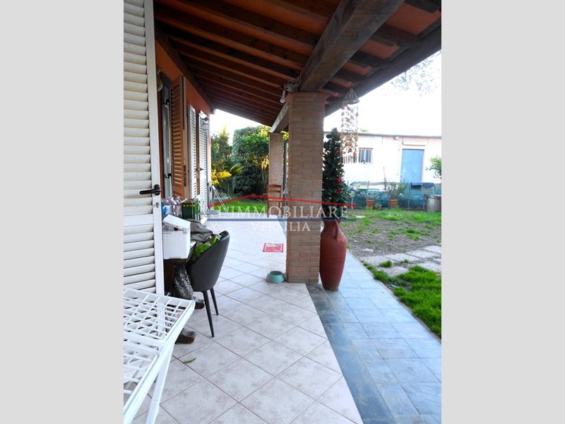 Poveromo A circa 1200 metri dal mare si vende porzione di villetta bifamiliare sviluppata su unico piano rialzato con bel giardino privato di 300 mq su tre lati. Caratterizzata da una superficie di 85 mq circa, questa porzione di casa è stata recentemente ristrutturata, garantendo un ambiente moderno e accogliente. Disposta su un unico livello al piano rialzato, gode di un ingresso indipendente, offrendo privacy e comodità ed è così composta: ampio soggiorno con cucina a vista, disimpegno notte, camera matrimoniale, camera doppia ed ampio bagno. Portico IDEALE PER PRANZI E CENE ALL'APERTO, casetta in legno ad uso deposito, zona lavanderia sul retro dell'immobile e zona parcheggio per 4 auto. Impianto di climatizzazione caldo/freddo.