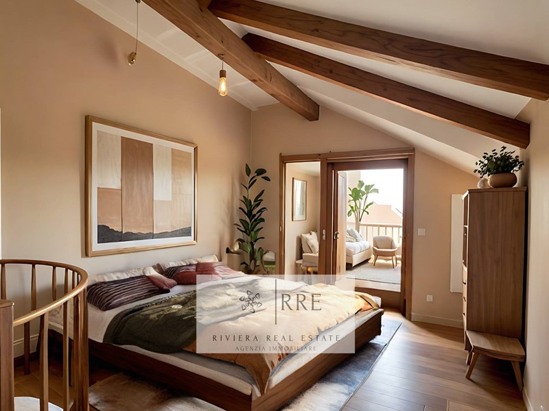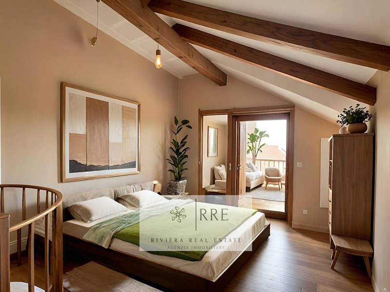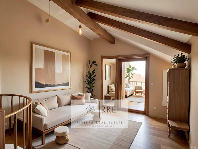 Ad Alassio, nella prestigiosa frazione collinare di Moglio, si trova questo splendido Terracielo con terrazza con spettacolare vista mare, caratterizzato da uno stile rustico in pietra, tipico della zona.