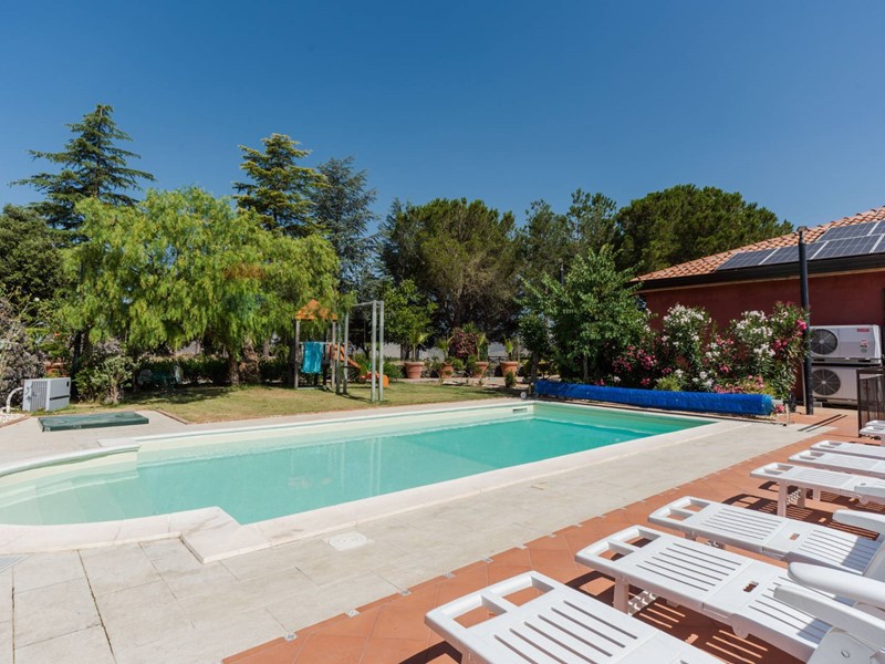 La villa dispone anche di un giardino privato con ampie terrazze e di un terreno di 25.000 mq. Inoltre una piscina con acqua di recentissima costruzione rende ancora più piacevole la residenza. Questa villa è il luogo ideale per chi ama la natura e vuole godere della privacy e della tranquillità.