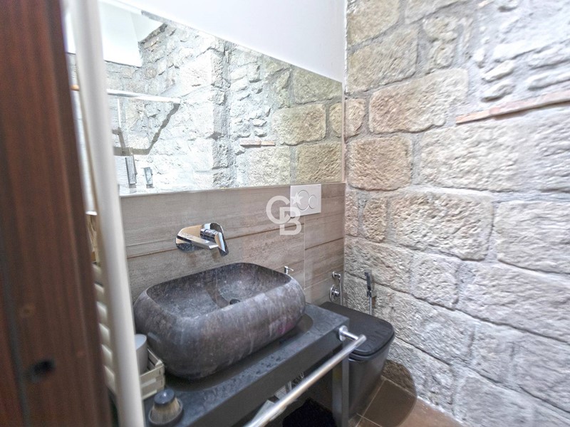 L'appartamento è stato oggetto di una ristrutturazione integrale che ha interessato impianti e rivestimenti, pur mantenendo dettagli architettonici storici come i portali di e gli imbotti in peperino