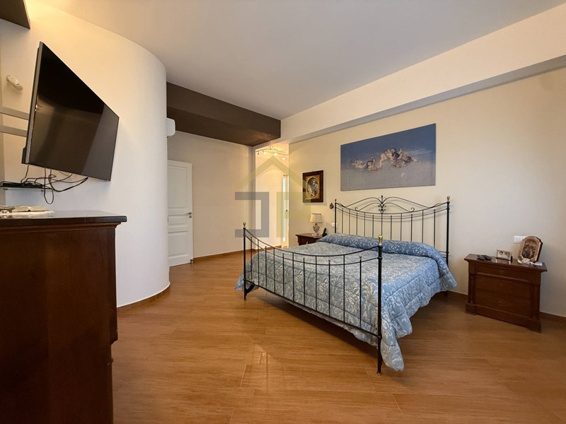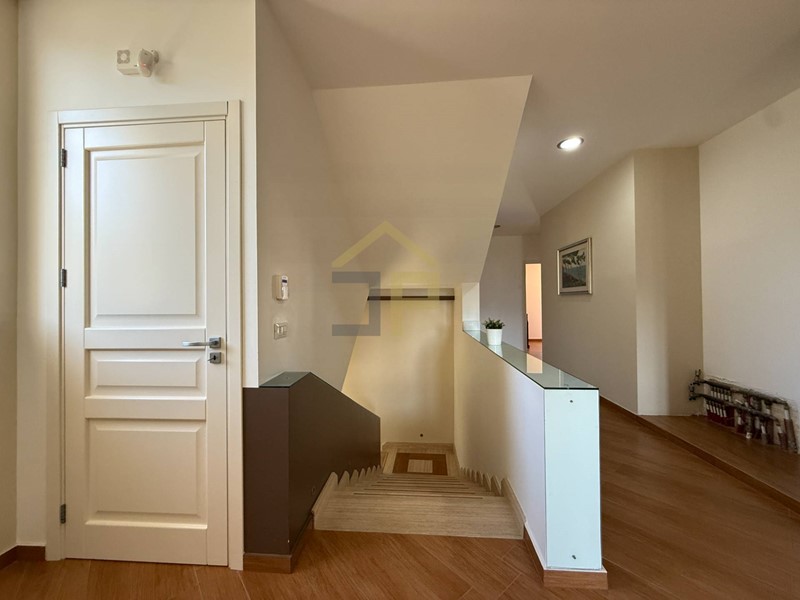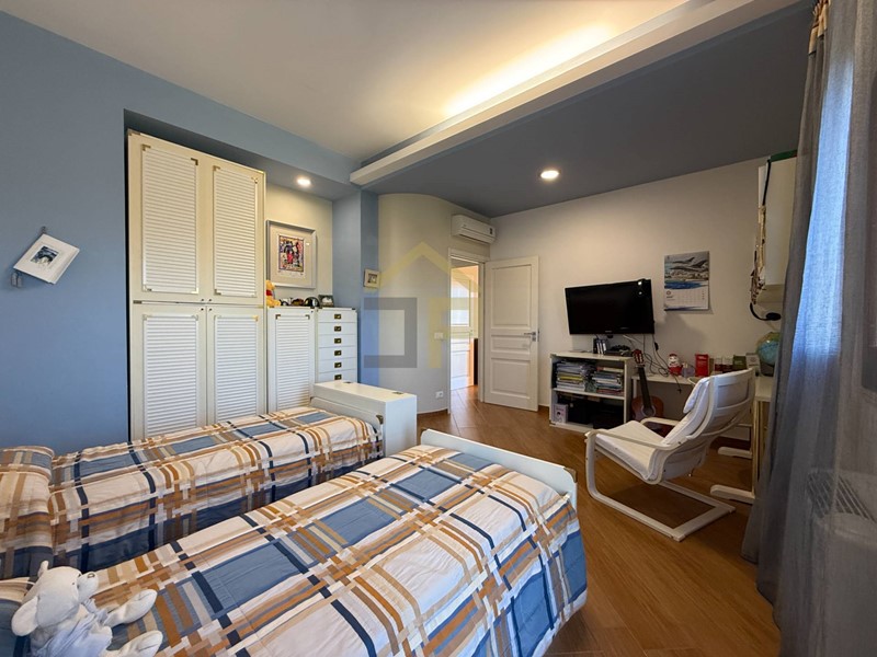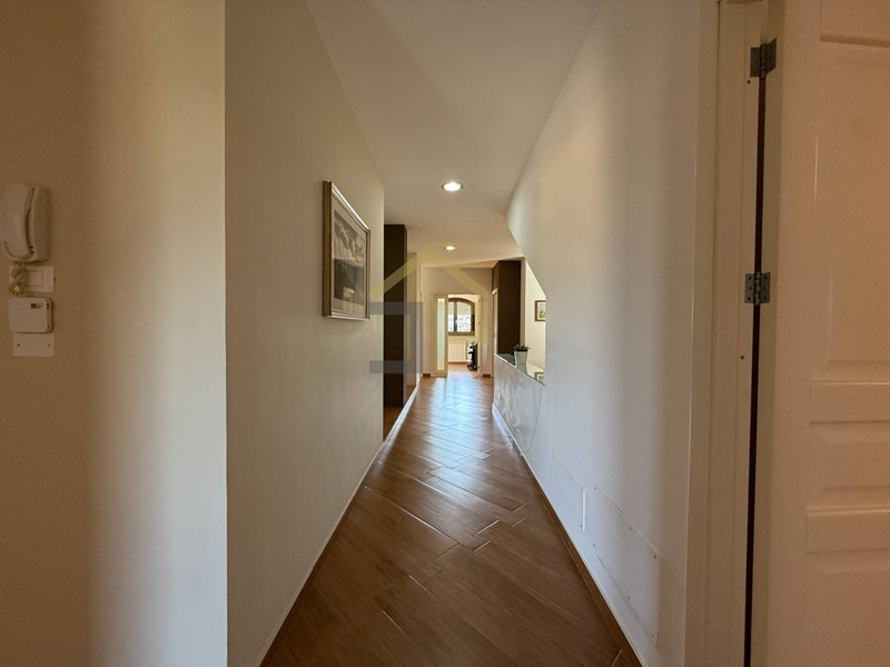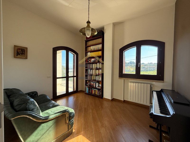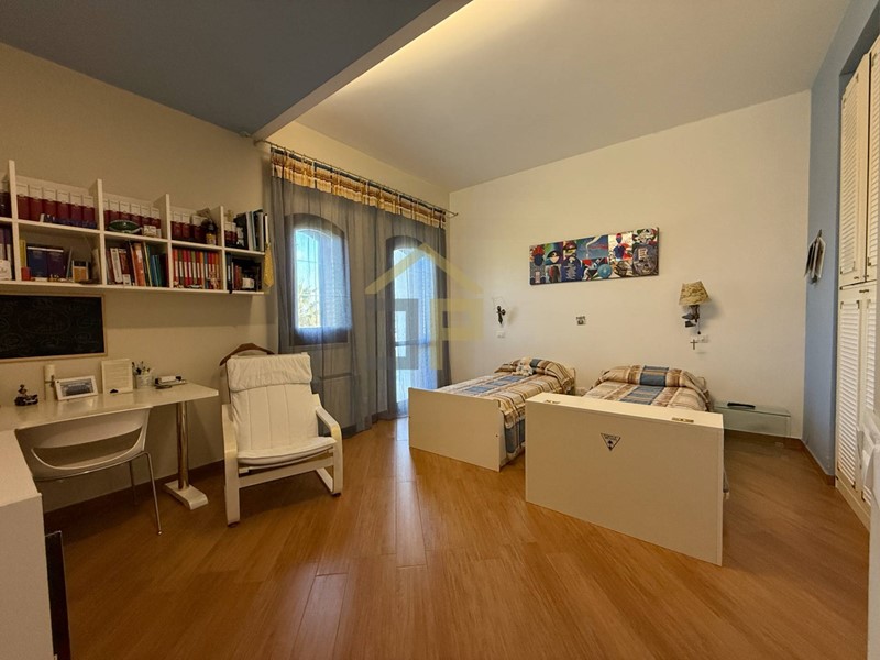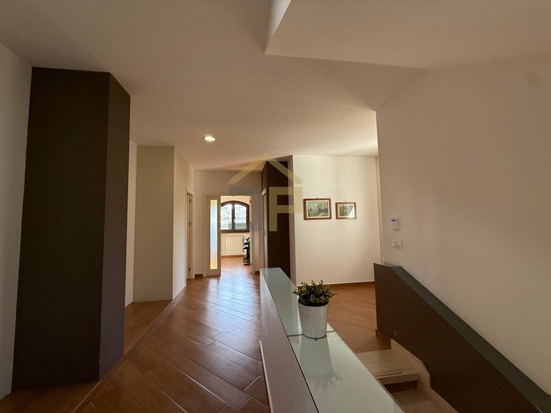 Tramite scala in marmo si accede al primo piano con ingresso su un disimpegno che introduce le varie camere. La zona notte è composta da due camere da letto matrimoniali, camera da letto padronale con bagno in camera e cabina armadio, oltre a una lavanderia con accesso su balcone, un comodo bagno e una seconda veranda cui si accede tramite studio.