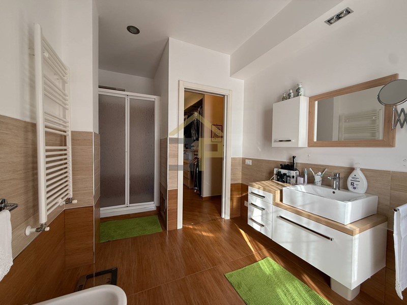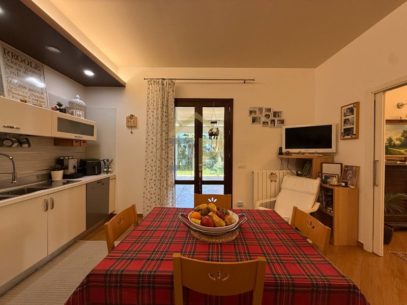 Il piano terra si presenta con ingresso che ci conduce a un elegante e spazioso salone, impreziosito da unampia vetrata che garantisce grande luminosità e un naturale collegamento con il verde esterno. Adiacente al soggiorno si trova unampia cucina, collegata allo stesso tramite porta scorrevole, con comodo ripostiglio annesso e accesso diretto alla veranda, ideale per vivere appieno gli spazi esterni e pranzi allaperto.