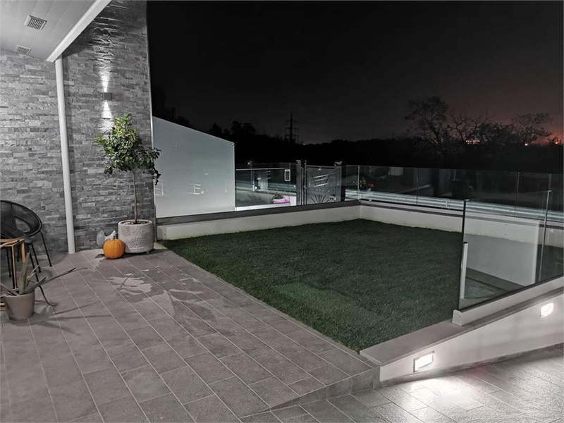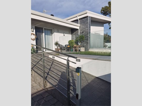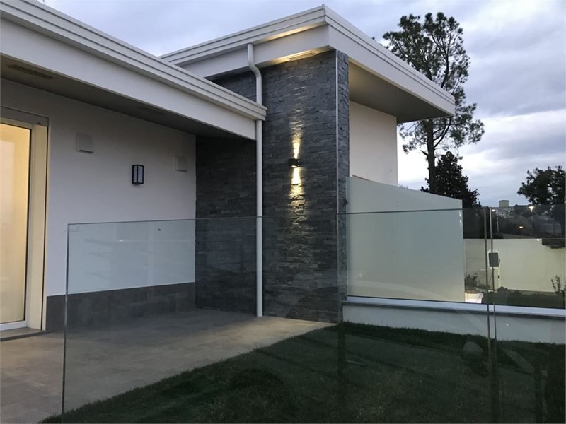 Graziosa villetta in Villanova di Cepagatti, sita in Via Po.\nLa costruzione recentissima dello stabile permette all'abitazione di presentarsi in ottime condizioni.\nDisposta unicamente su un livello, l'unità dispone della giusta indipendenza, accessi carrabile e pedonale privati direttamente nell'ampia corte esclusiva fronteggiante l'immobile.\nDoppio giardino. Il primo frontale, completamente recintato e ottimamente distribuito tra spazio verde, zona betonellata carrabile capiente di più posti auto, elegante sistemazione degli spazi con parapetti metallici o vetrati. Il secondo giardino posto sul retro della proprietà, anch'esso completamente delimitato, ampio e confortevole come zona relax oltre a presenza di area barbecue e due spaziosi ripostigli.\nInternamente l'abitazione presenta un accesso nel luminoso soggiorno-pranzo completo di angolo cottura, camino e doppio affaccio sui giardini esterni, disimpegno di collegamento a servizio igienico, comodo ripostiglio/lavanderia, due camere da letto di cui una padronale con bagno esclusivo e uscita per entrambe sui relativi spazi esterni.\nImpiantistica di ultima generazione. Impianto elettrico da 4,5 Kw e fotovoltaico da 3 Kw; pompa di calore 3 in 1 per riscaldamento, raffrescamento e acqua calda sanitaria. Totale assenza di gas. Impianto di allarme installato da ditta specializzata.\nVicinanza immediata ai raccordi stradali quali autostrade e asse attrezzato, servizi urbani e cittadini in quanto situata ad un passo da Chieti Scalo e da Villanova.\n - Maggiori Dettagli: Videocitofono, Climatizzato, Porta blindata, Cucina Abitabile, Sistema di allarme, Camino
