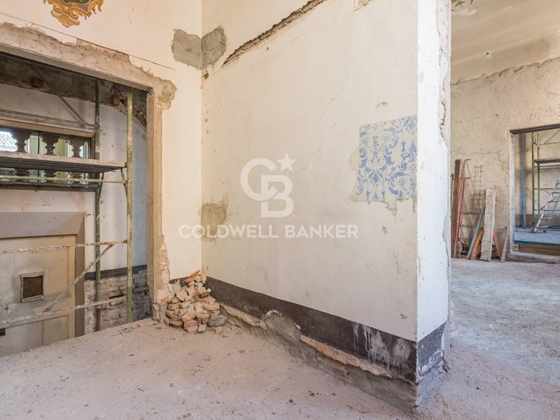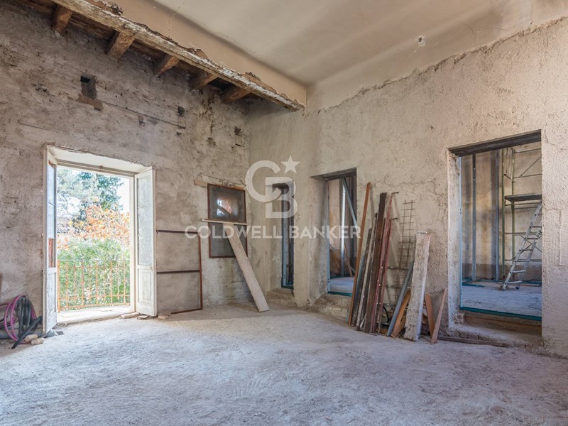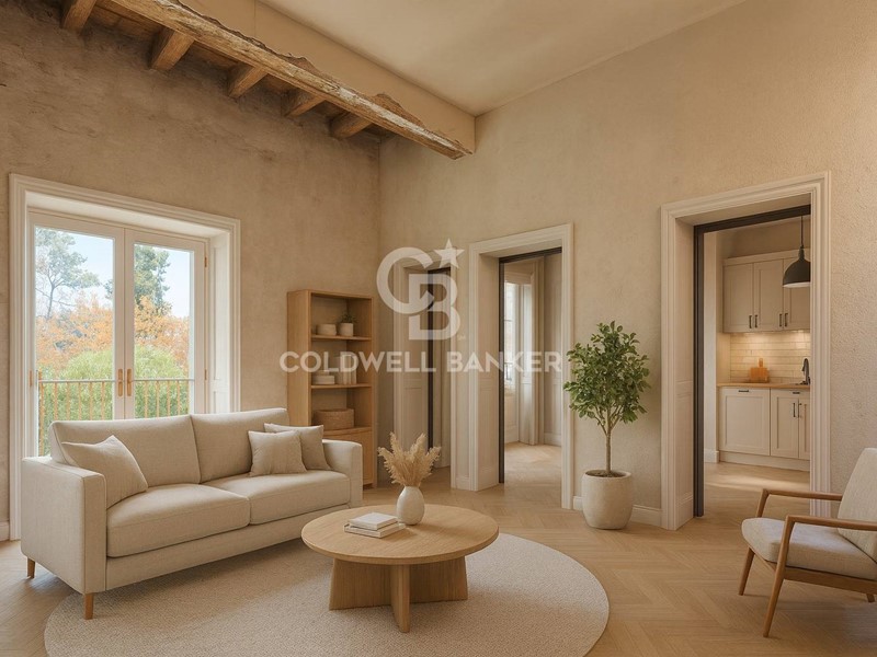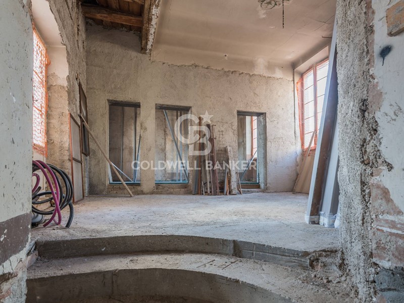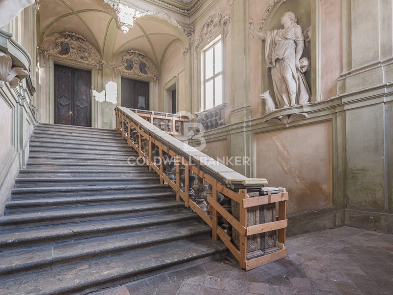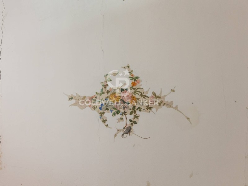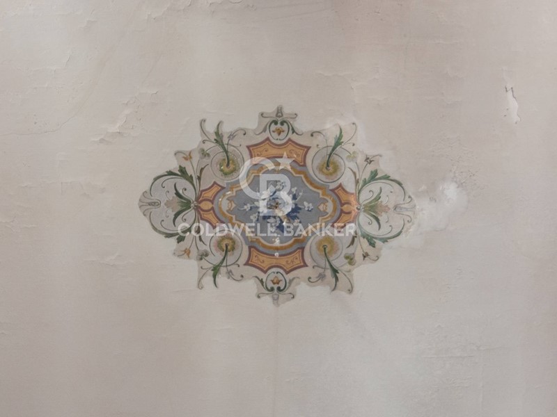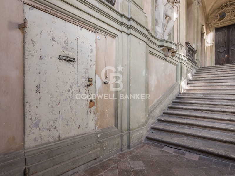 Attraverso una maestosa scalinata monumentale, si accede a un ingresso affrescato che introduce allampia zona giorno di 32 mq, valorizzata da un dipinto originale dellepoca e da un grande balcone affacciato sulla corte interna del palazzo.