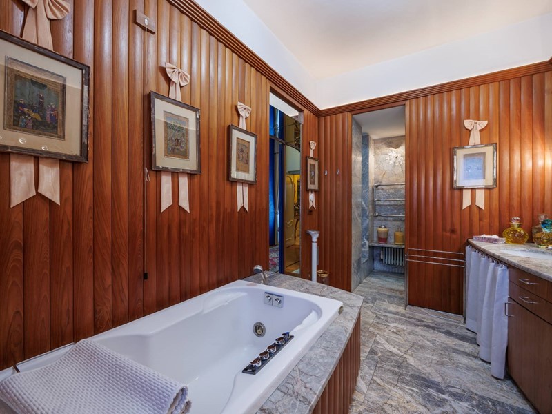 A sinistra rispetto all'ingresso si entra nella zona notte con anch'essa un ampio salone o zona conversazione, una grande suite composta da cabila armadio completamente attrezzata, zona studio, camera matrimoniale e bagno con doppi lavandini, vasca e doccia; una terza camera con bagno en suite, uno studio, un altro bagno di servizio ed una generosa e pratica lavanderia.