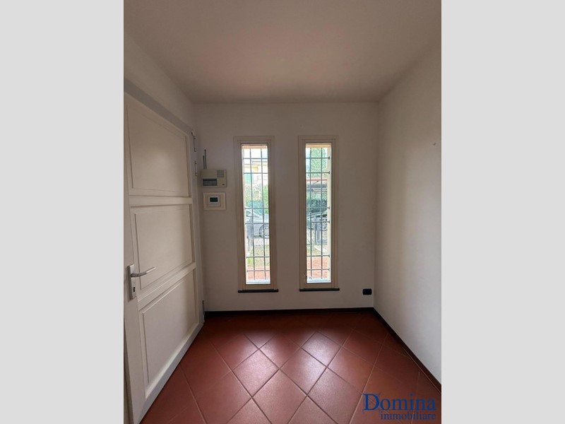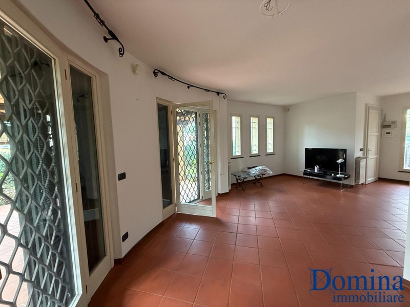 Al piano terra l’ingresso principale conduce nella luminosissima zona giorno, caratterizzata da un ampio soggiorno con grandi aperture che garantiscono luce naturale in ogni momento della giornata. Le porte-finestre permettono l’accesso all’esclusivo portico, ideale per pranzi e cene all’aperto durante la bella stagione.