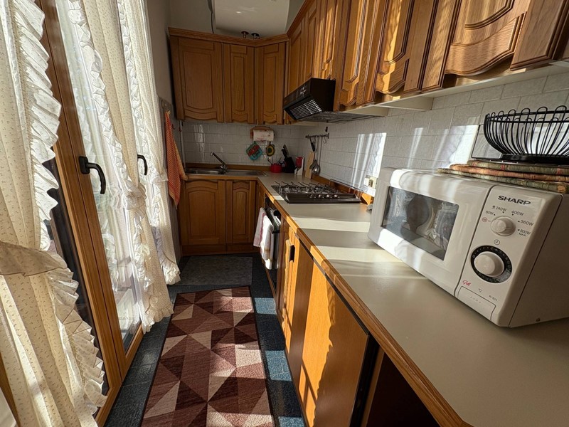 Lingresso con bussola è pratico e funzionale, ci accompagna nel soggiorno con accesso diretto al terrazzo, in comunicazione con la cucina separata.