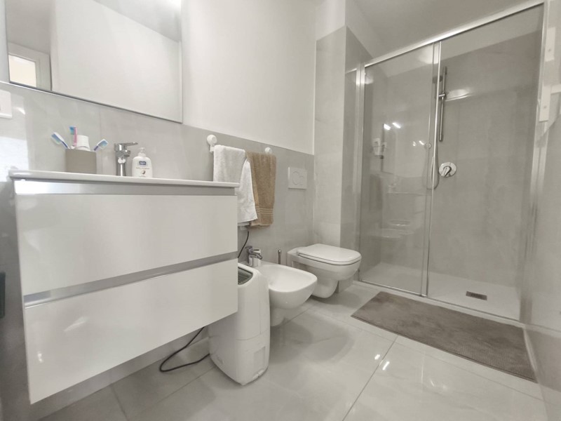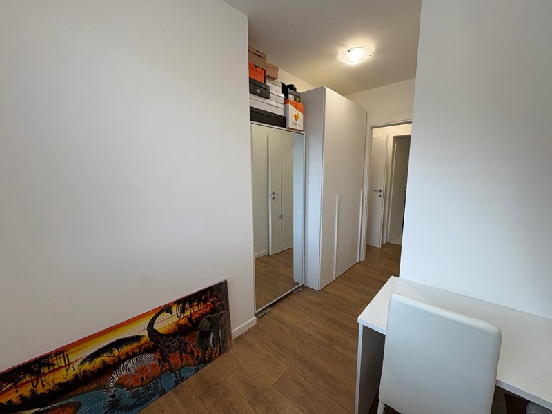 Un disimpegno conduce alla camera matrimoniale, ampia e luminosa, a un secondo locale versatile utilizzabile come cameretta, studio, guardaroba o cabina armadio, e al bagno con box doccia.