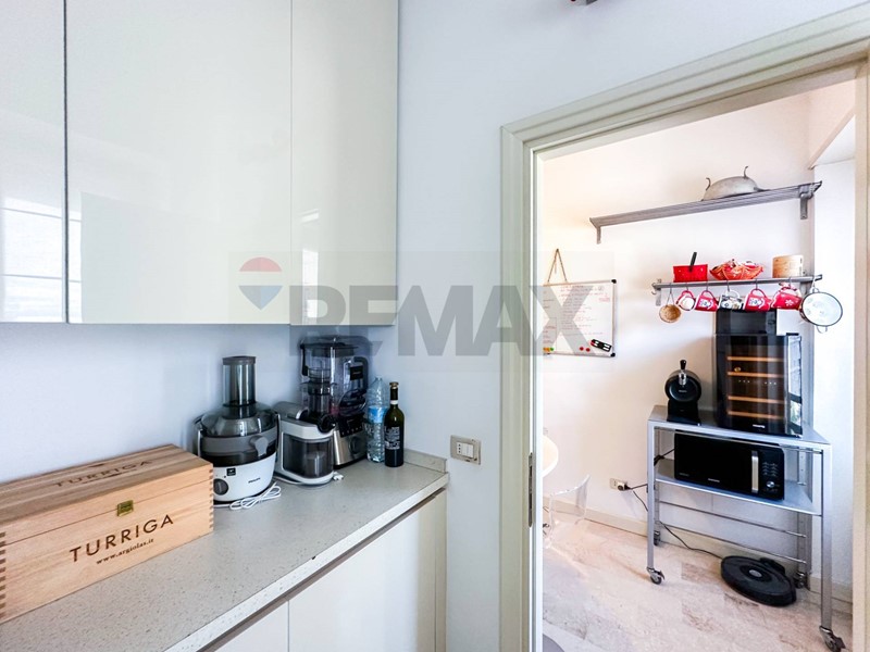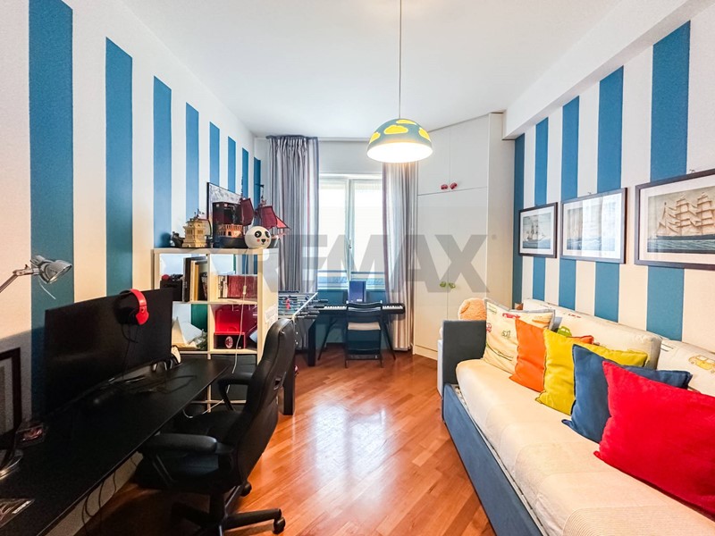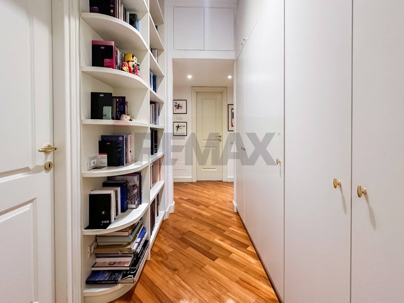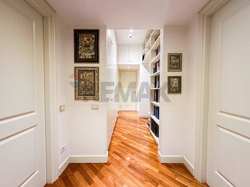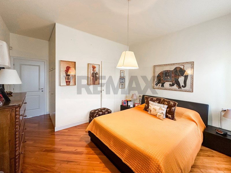 La residenza, posta al sesto piano di uno stabile signorile è così composta: ingresso, ampio e luminoso soggiorno, cucina e lavanderia. Nella zona notte troviamo tre camere da letto, una matrimoniale con bagno en-suite e cabina armadio, una seconda camera matrimoniale, una camera singola con balcone, un ampio studio e due bagni.
