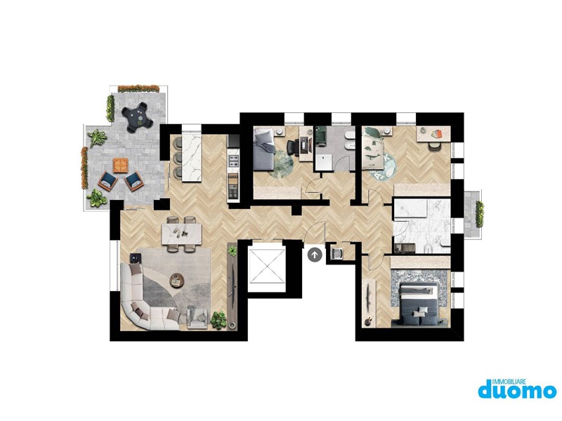 Proposta rivolta al cliente alla ricerca di un appartamento di buona metratura, ultimo piano, con tre VERE camere, con la possibilità della scelta delle finiture, usufruendo anche dei bonus fiscali in un ottimo contesto ad un passo dal cuore della città..