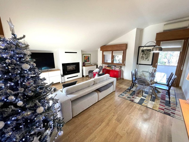 Nella piazza centrale del paese, in signorile condominio oggetto di riqualificazione con Superbonus, caratterizzato da un piacevole giardino condominiale, proponiamo in vendita tricamere ristrutturato sito al secondo ed ultimo piano (no ascensore). Immobile composto da: Ingresso, terrazza, bagno finestrato con doccia, cucina semi-separata con piacevole terrazza abitabile dotata di tenda da sole, spazioso soggiorno con caminetto ed accesso alla terza terrazza, disimpegno notte, tre camere da letto e secondo bagno con doccia. Al piano interrato garage con annessa cantina. L'appartamento risulta completamente ristrutturato con gusto così come l'intero fabbricato.