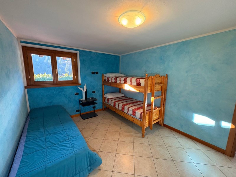 Salendo la scala in legno, si raggiunge il reparto notte, dove il comfort incontra la bellezza del paesaggio: una spaziosa camera matrimoniale con vista sulla Presolana, una camera doppia accogliente e un bagno finestrato di grande charme, dotato sia di ampia doccia che di vasca, per concedersi momenti di vero relax.