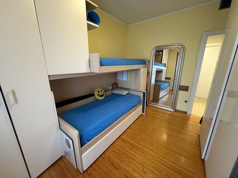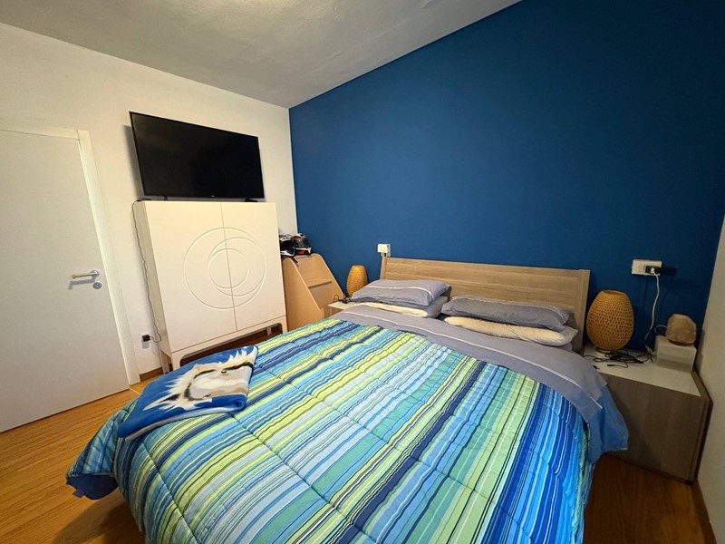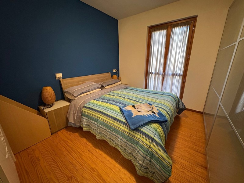 La zona notte offre una camera matrimoniale con accesso al balcone e splendida vista sulla Presolana, una seconda camera con uscita su un terzo balcone e un bagno finestrato con doccia.