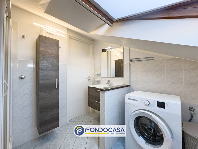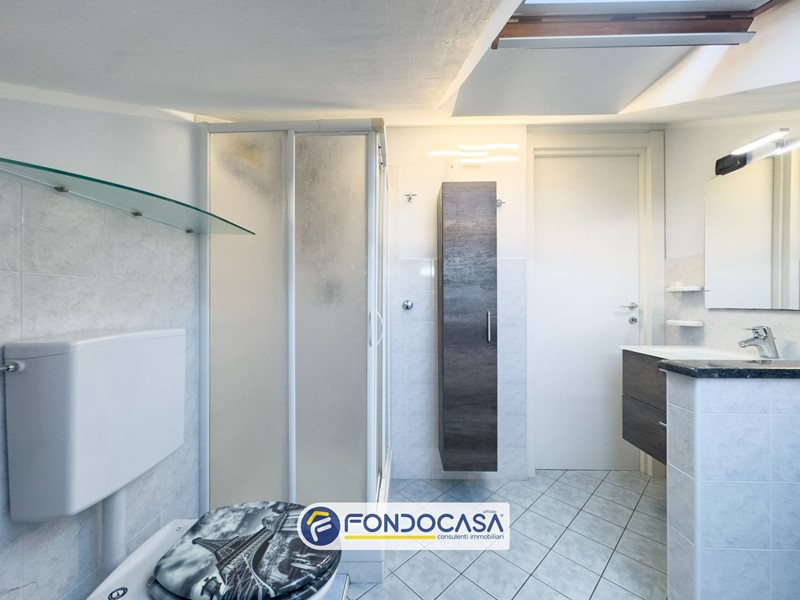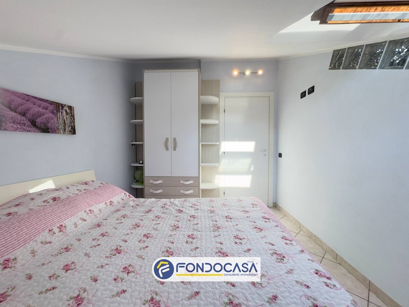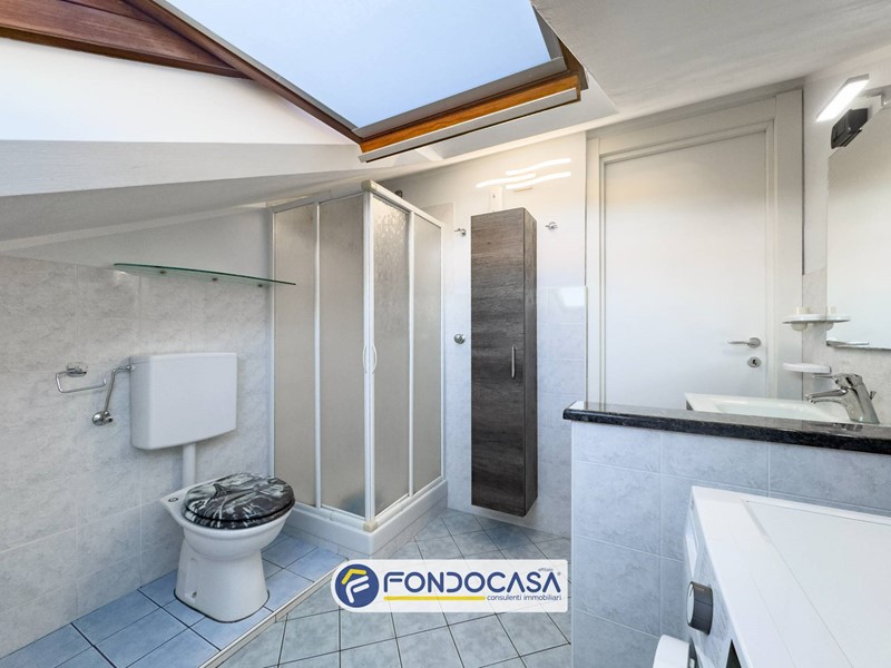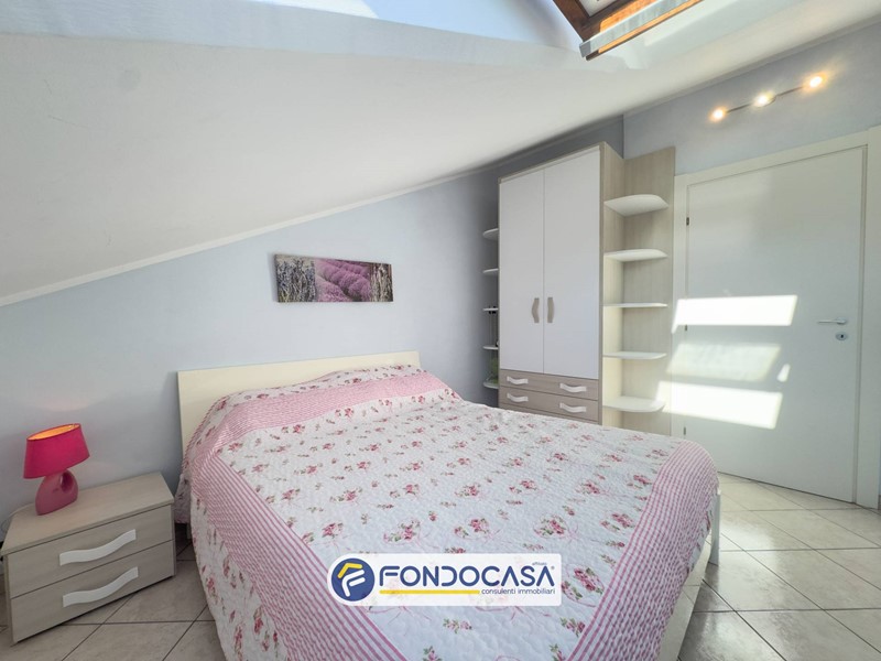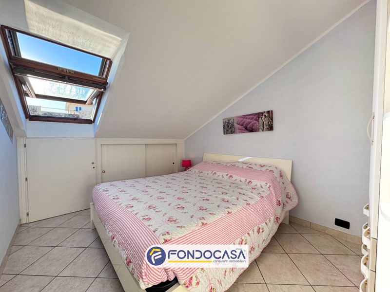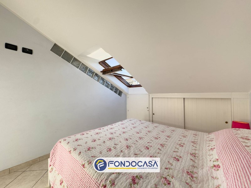 La camera da letto, spaziosa e ben illuminata, è affiancata da una pratica cabina armadio. Completa la proprietà un bagno moderno dotato di doccia e velux, per un'illuminazione naturale e un ambiente sempre arieggiato.
