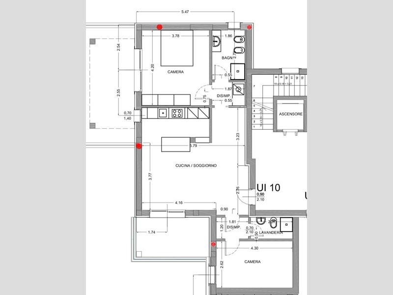 Al terzo piano, servito da ascensore, proponiamo trilocale.