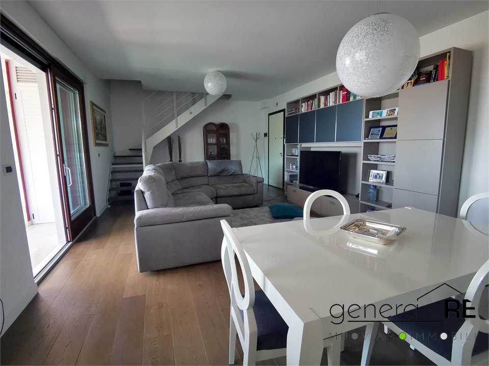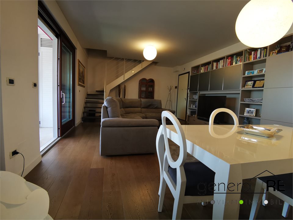 La Genera-re Immobiliare propone in vendita elegante attico su due livelli, caratterizzato da ambienti luminosi e ampi spazi esterni.\nAl primo livello troviamo un accogliente soggiorno, una cucina funzionale, un bagno e uno splendido terrazzo, ideale per momenti di relax all'aperto.\nIl secondo livello ospita due camere da letto, un bagno e un ulteriore terrazzo, perfetto per godere di privacy e comfort.\nPossibilità di acquistare garage al prezzo di and euro;70.000,00.