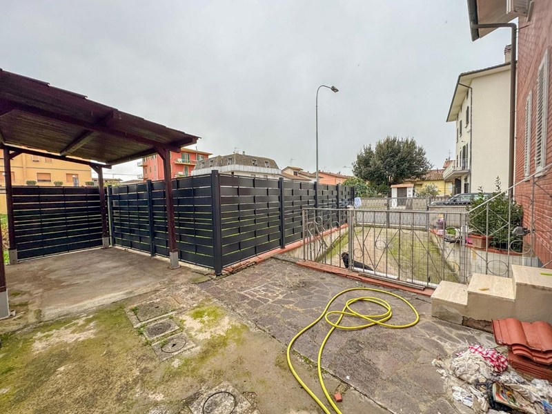 L'appartamento si trova in posizione comoda e vicina a tutti i servizi ed è composto da: ingresso, soggiorno con affaccio sul portico e sul resede frontale, cucina abitabile, 3 camere, 2 bagni, grande garage e ripostiglio.
