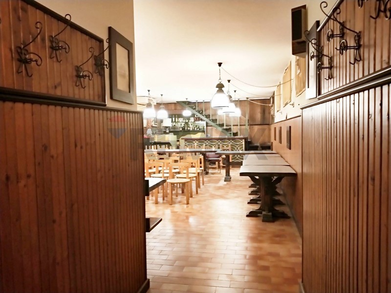 Lingresso principale conduce al raccolto BAR di circa 26 mq., punto di accoglienza che smista i clienti verso lALBERGO o verso il RISTORANTE. Proseguendo, una gradevole HALL anticipa la SALA RISTORAZIONE di circa 52 mq. con camino, collegata alla CUCINA di circa 24 mq. e al locale retro cucina.