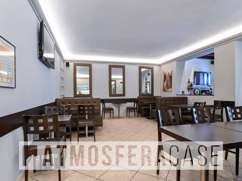 La soluzione è così predisposta: ingresso su ampia zona open space con banco bar, altre tre sale semi separate e cucina attrezzata.