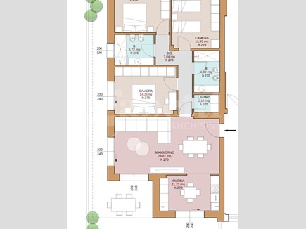 Finiture di pregio.- UNITA 17) Ampio e luminoso quadrilocale composto da : ingresso su spazioso soggiorno ,con ampie finestre che affacciano su entrambi i lati nei due terrazzi abitabili cucina abitabile, due bagni di cui uno finestrato, zona lavanderia, disimpegno e tre luminose camere da letto.