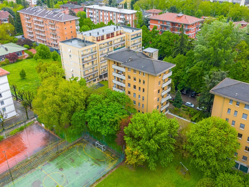 L'appartamento si apre su un’ampia zona giorno, caratterizzata da un open space con cucina a vista che, grazie alle due finestre con affaccio sul verde, risulta essere molto luminoso. Questo spazio è ben studiato per poter sfruttare al meglio l'ambiente living.