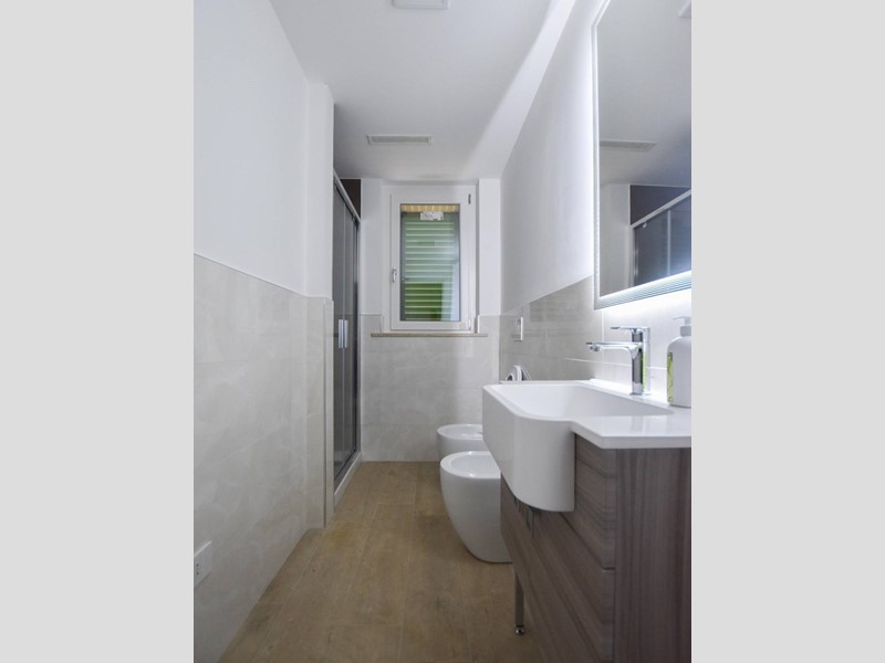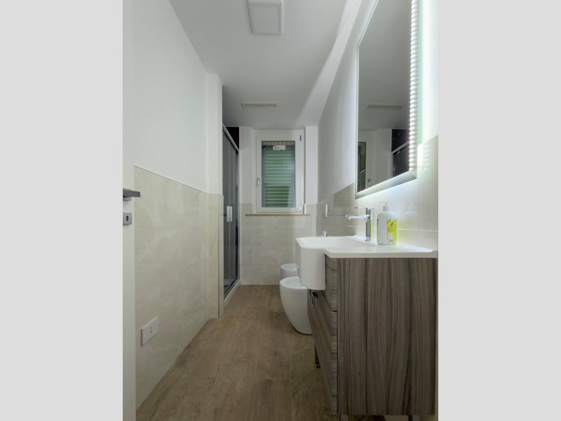 Lunità al piano terra dispone di spazi interni ben organizzati, con zona giorno e zona notte già presenti sullo stesso livello, e gode di un rapporto diretto con lesterno grazie al portico di circa 15 mq e al giardino privato esclusivo, elemento di grande valore per la vivibilità quotidiana. Lunità al piano primo, anchessa autonoma e indipendente, ripropone una distribuzione funzionale analoga degli ambienti interni e si distingue per la presenza del balcone/terrazza di circa 15 mq, unico livello dotato di affaccio sopraelevato, che valorizza ulteriormente luminosità e apertura verso il contesto circostante e la vista mare.