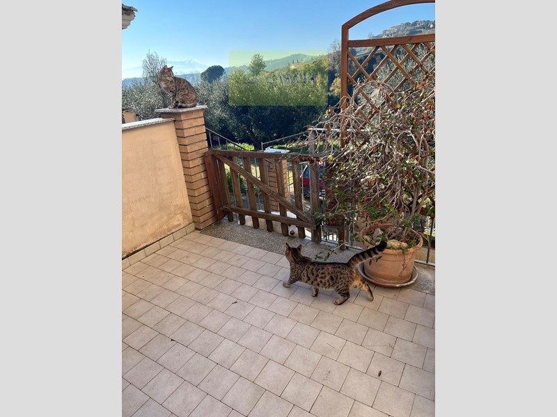 Appartamento con ingresso indipendente disposto su due livelli, uno al piano terra con ampia taverna, bagno, garage piccola corte privata, scala interna per accesso al primo livello con numero due camere doppie, un bagno con vasca e ampia finestra,, una cameretta, balcone con accesso al secondo giardino privato. L'immobile si presenta in buone condizioni, con riscaldamento autonomo, termocamino al piano terra, infissi in legno e doppio vetro, portone blindato. Dalle due camere doppie al primo piano si accede ad un grande terrazzo dal quale si accede anche al giardino. Dalla terza stanza al primo livello, si accede ad un giardino interno. Non ci sono spese condominiali.