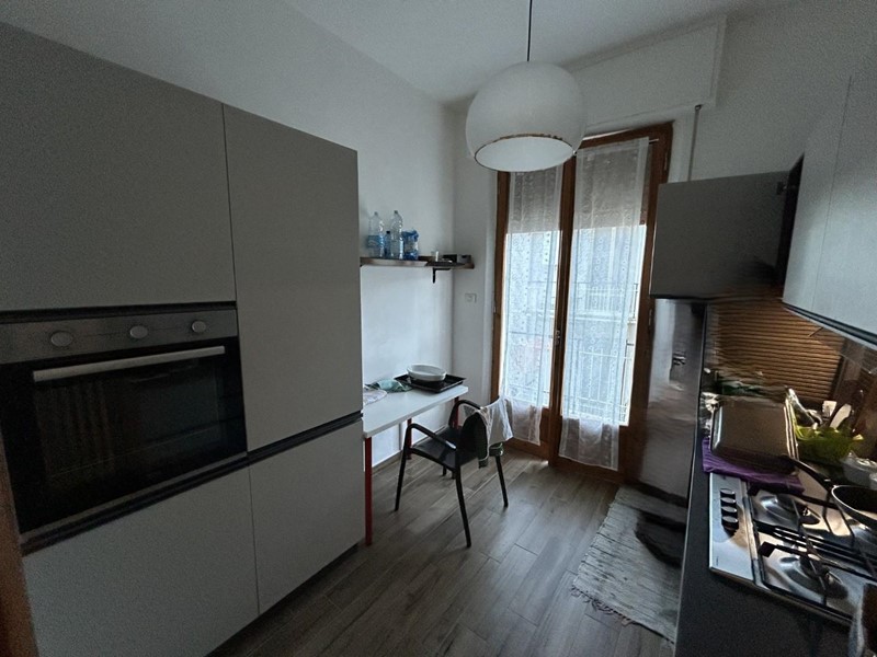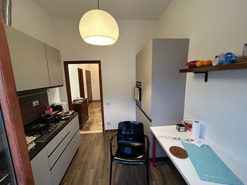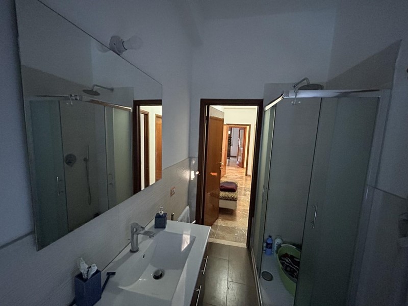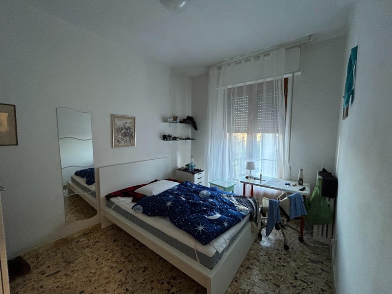 Appartamento al piano 1° di 110 mq circa in piccolo condominio, parzialmente ristrutturato e costituito da: ingresso, ripostiglio, grande soggiorno con balcone, cucina con balcone, disimpegno con accesso a zona notte, due camere doppie con accesso a terrazza, camera matrimoniale e bagno finestrato.