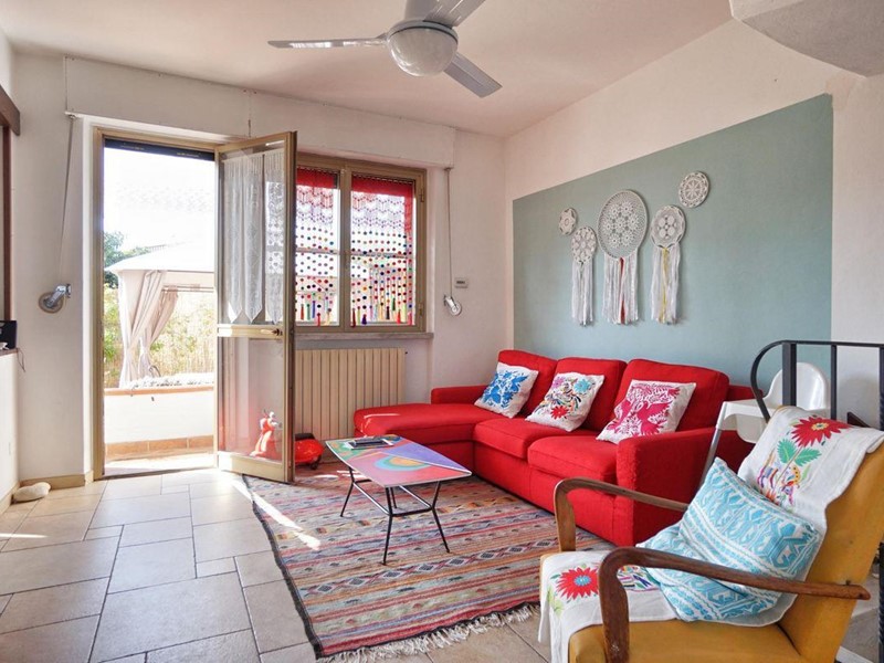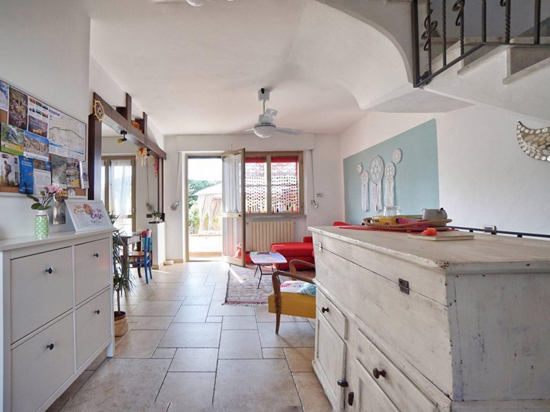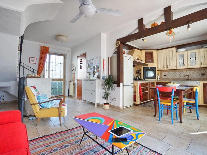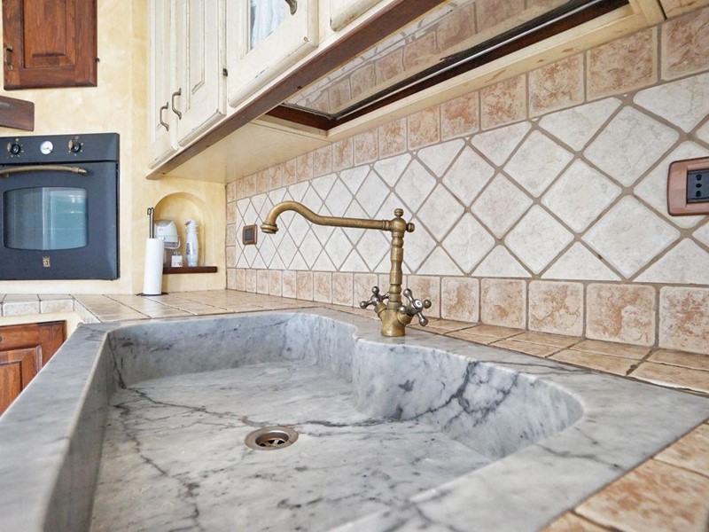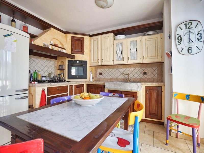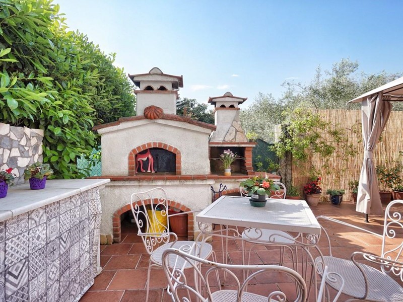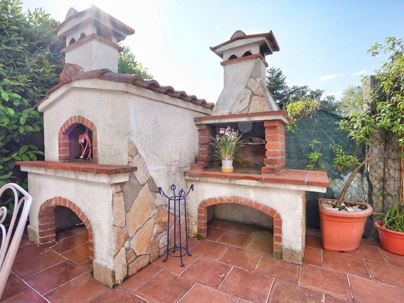 La villetta al piano terra è composta da ingresso su soggiorno con cucina abitabile a vista, piccolo bagno di servizio e ampia corte esterna piastrellata, dove si trovano anche un forno a legna e un barbecue in muratura.
