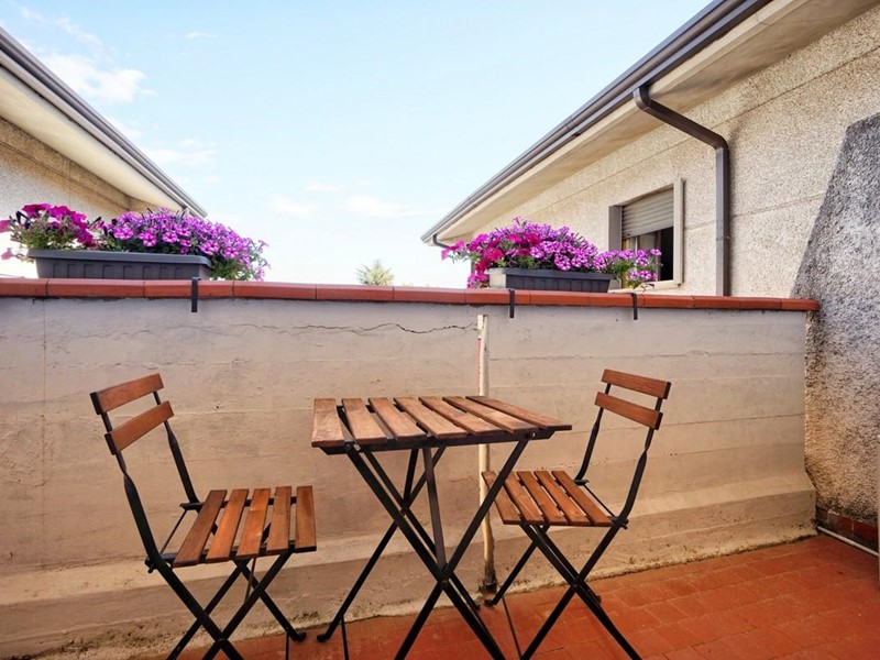 Al primo piano ampia camera matrimoniale con balcone, un grande bagno con spaziosa doccia in muratura, salotto studio (o quarta camera, anche se di passaggio) con altro terrazzino;