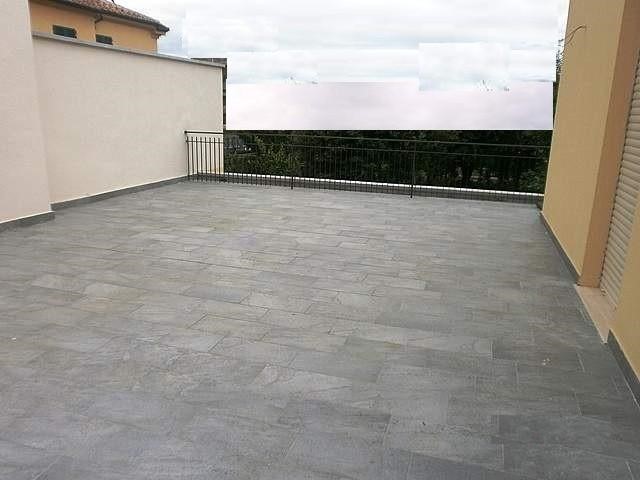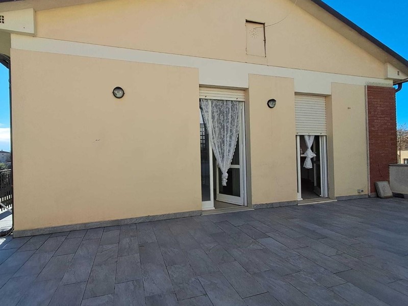 PONSACCO (centro) - AFFITTASI appartamento al 1°piano con bellissima terrazza di oltre 70 mq, ristrutturato a nuovo con finiture di alto livello tra cui serrande motorizzate, porte interne in massello, bagno con cabina doccia di cristallo e ottime rubinetterie. Accesso da Composto da piano terra in amplissimo ingresso con vari ripostigli e bagno; al 1°piano cucina abitabile, spettacolare salone doppio, disimpegno, 2 camere matrimoniali, cameretta e bagno. Sempre a piano terra è concesso, compreso nel canone, l'uso di un fondo non piccolo come locale di sgombero. Classe energetica G. Non arredato. Canone mensile € 950. Richieste 2 mensilità come cauzione, 6 mesi di preavviso per disdetta. No condominio. Solo per conduttori referenziati e italiani. Rif. XV6573BQ